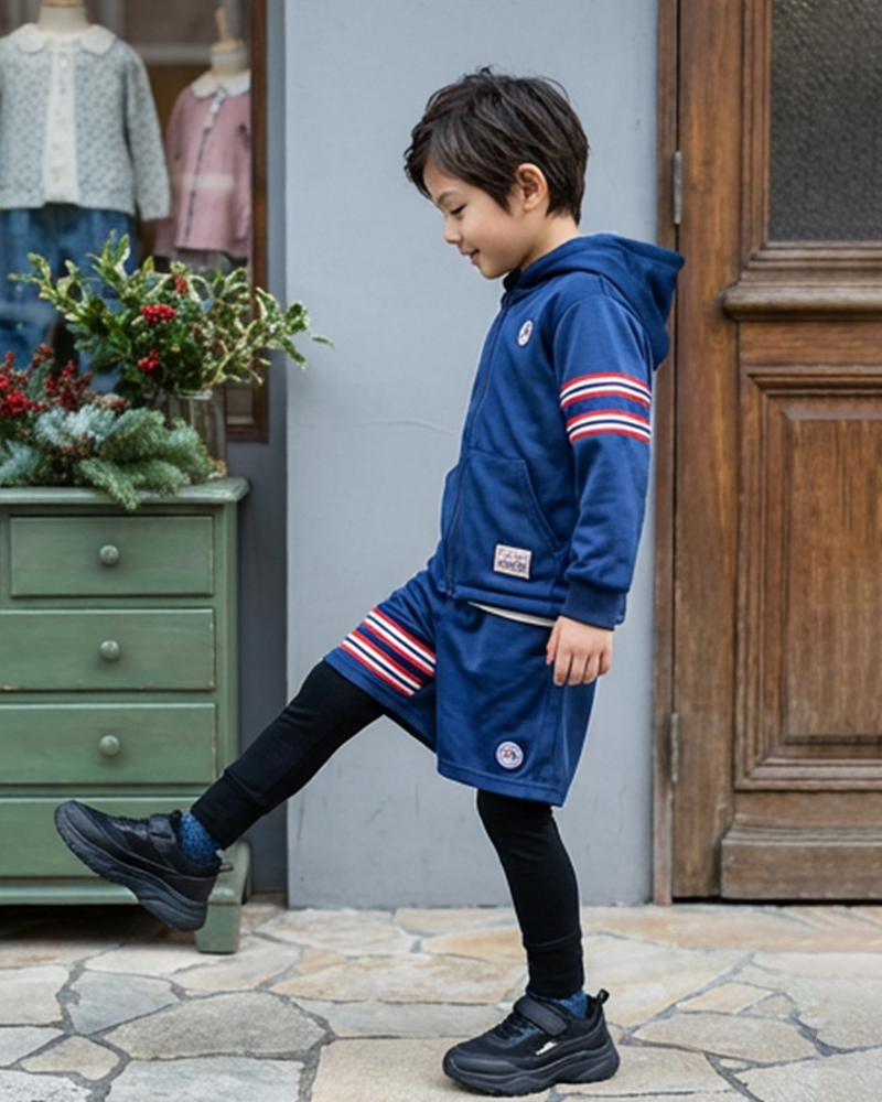 橡筋腰頭, 假兩件褲子, 絨毛短褲連彈性緊身褲, 口袋細節, 軟滑絨毛布, 寬鬆款式, As Know As 刺繡章