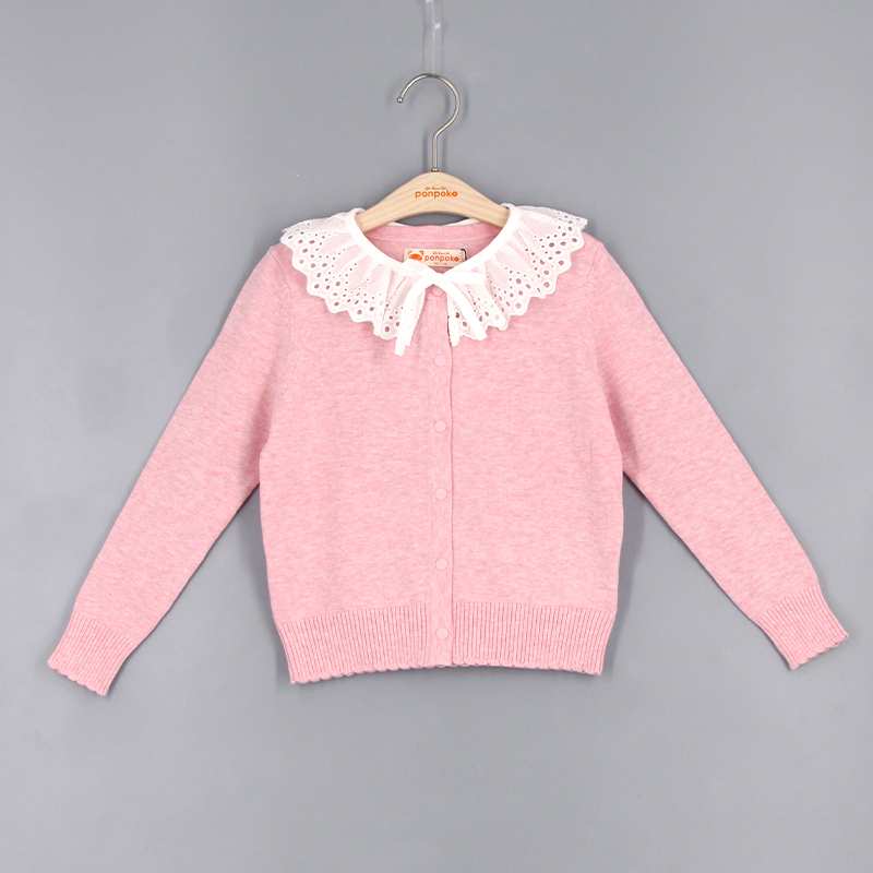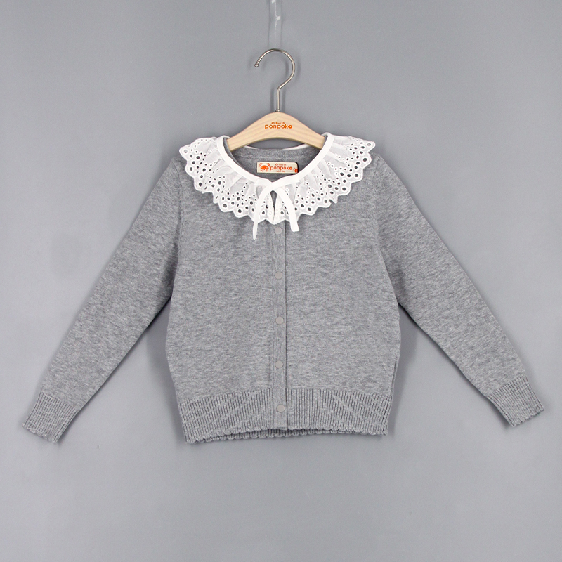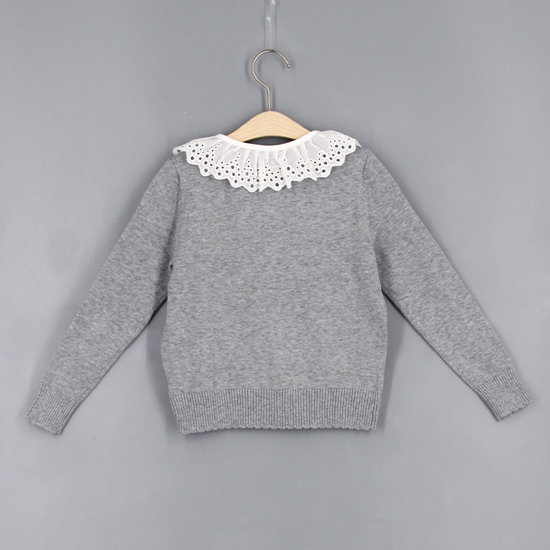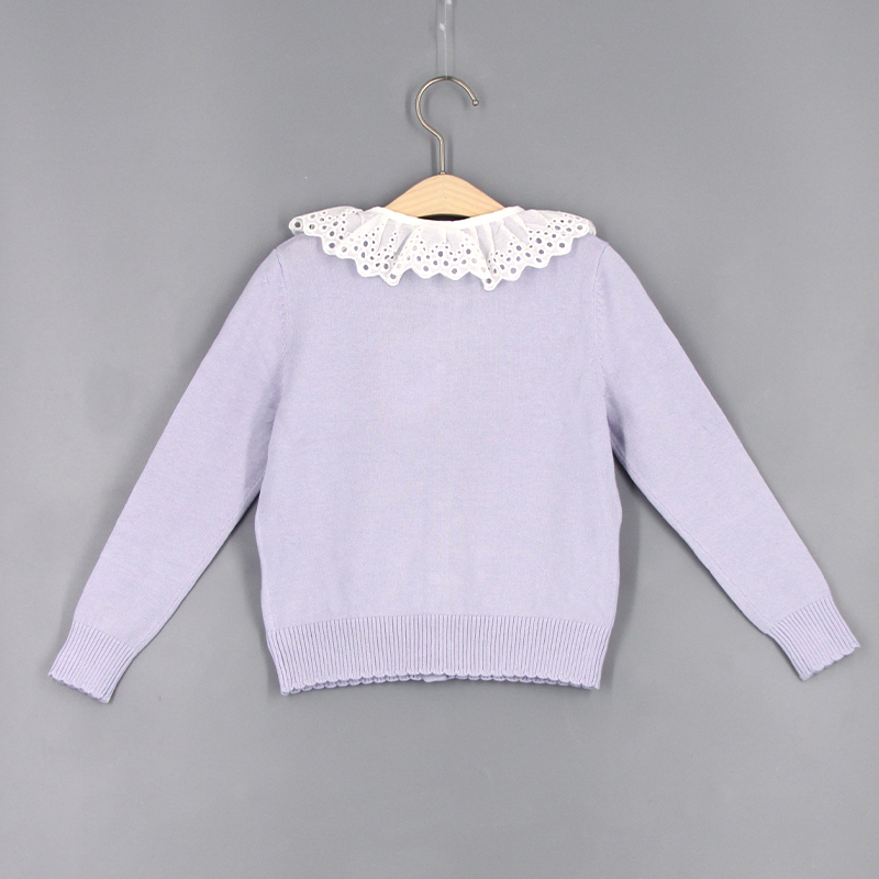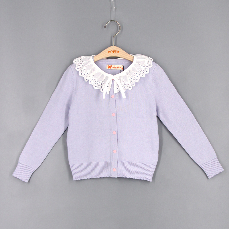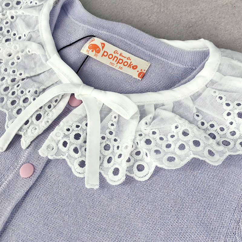 可拆卸式蕾絲領片, 圓領, 花邊領, 長袖, 開胸鈕扣細節, 羅紋袖手, 合身款式,