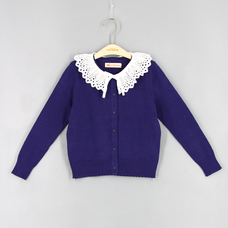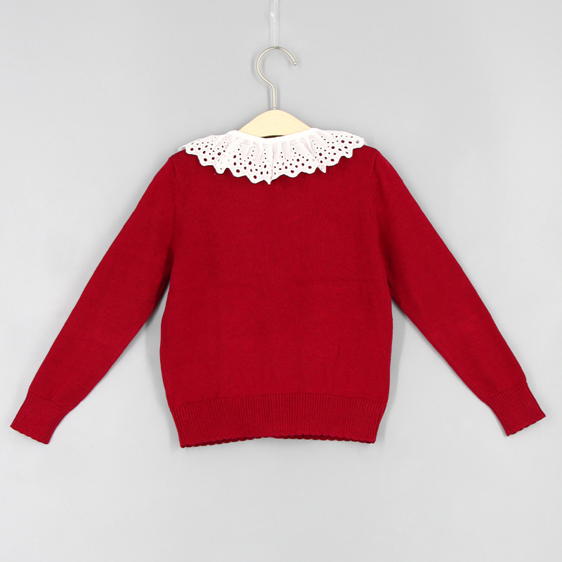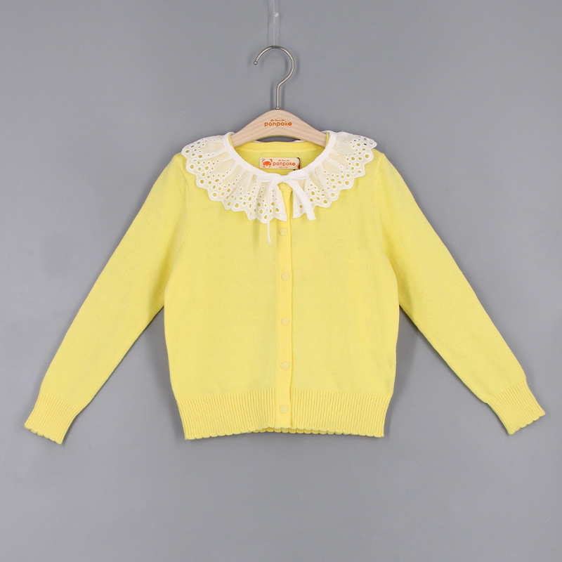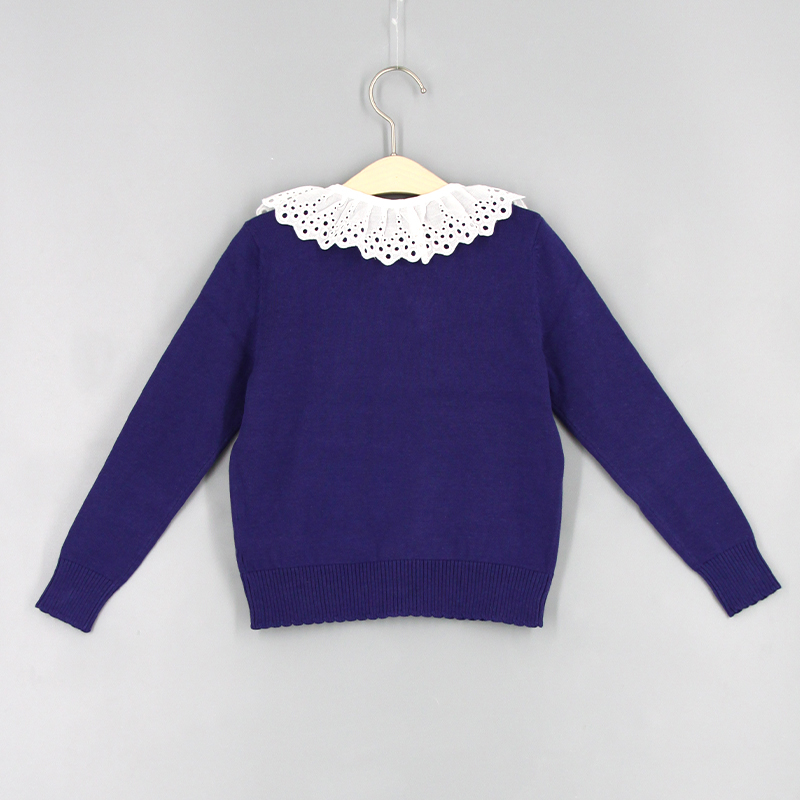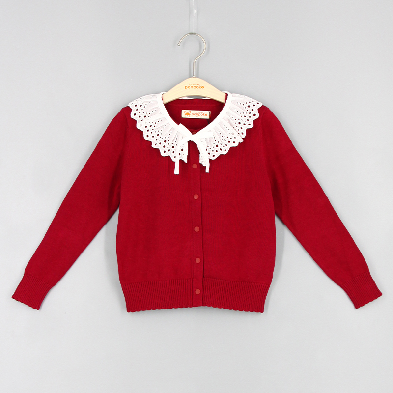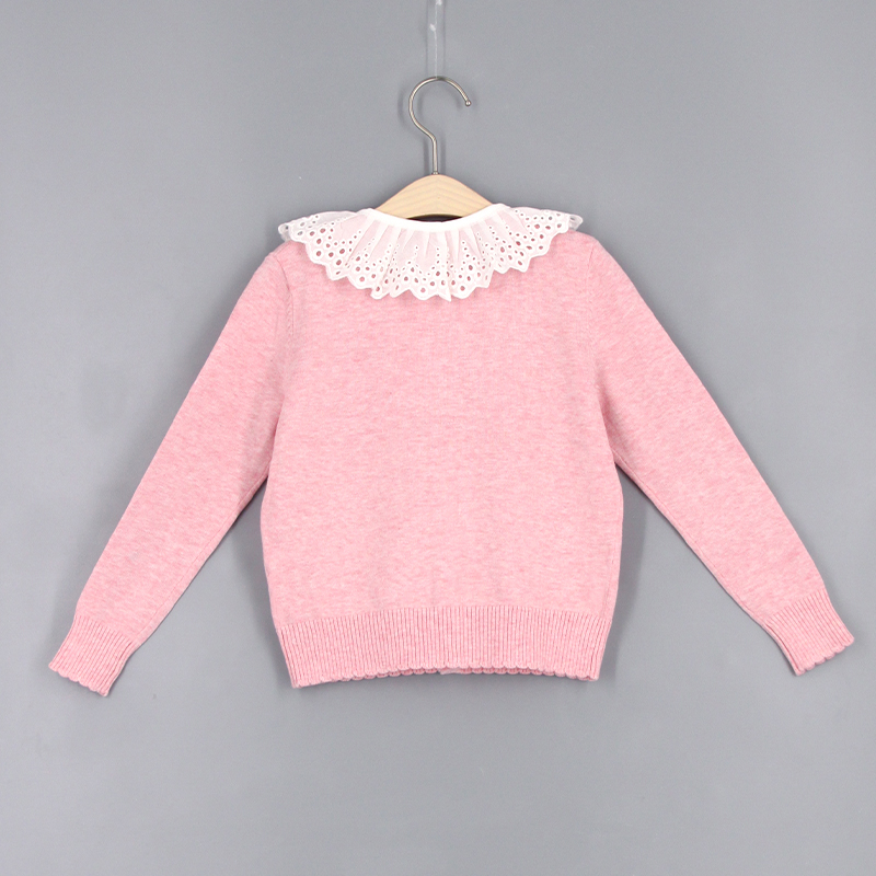 可拆卸式蕾絲領片, 圓領, 花邊領, 長袖, 開胸鈕扣細節, 羅紋袖手, 合身款式,