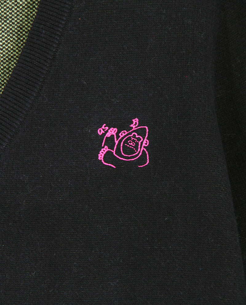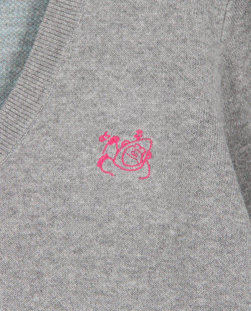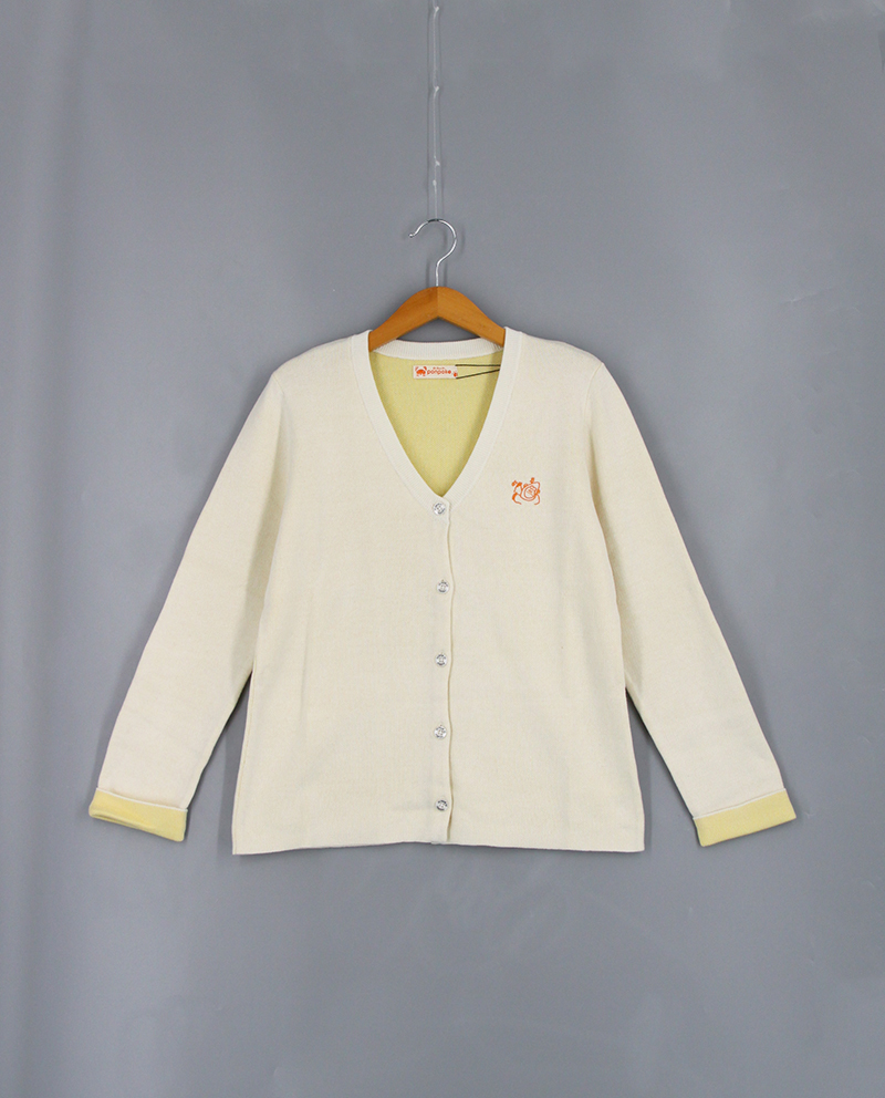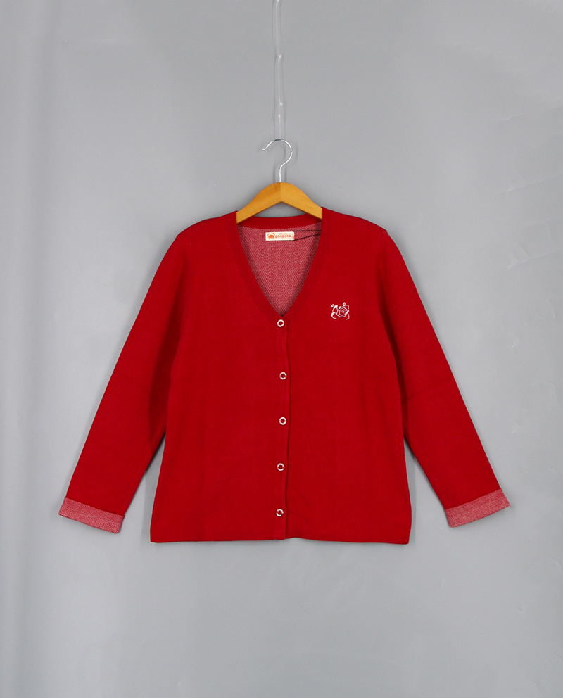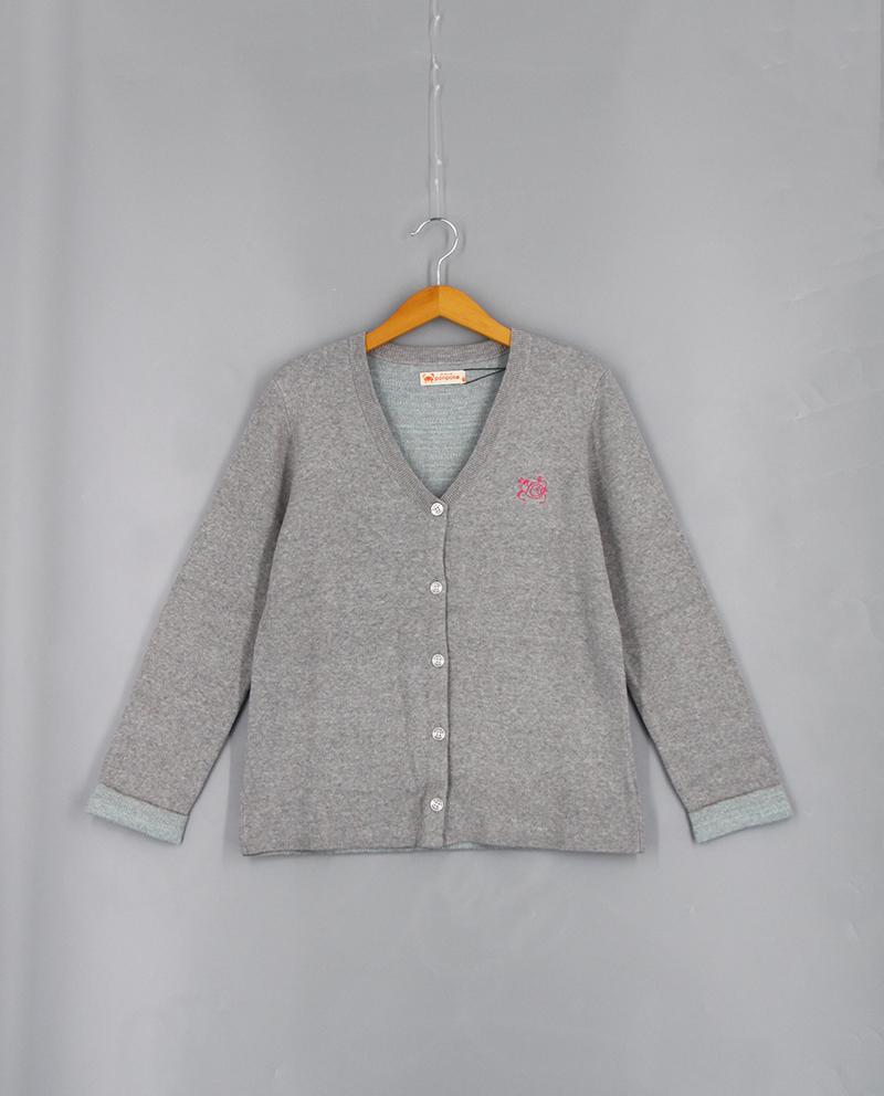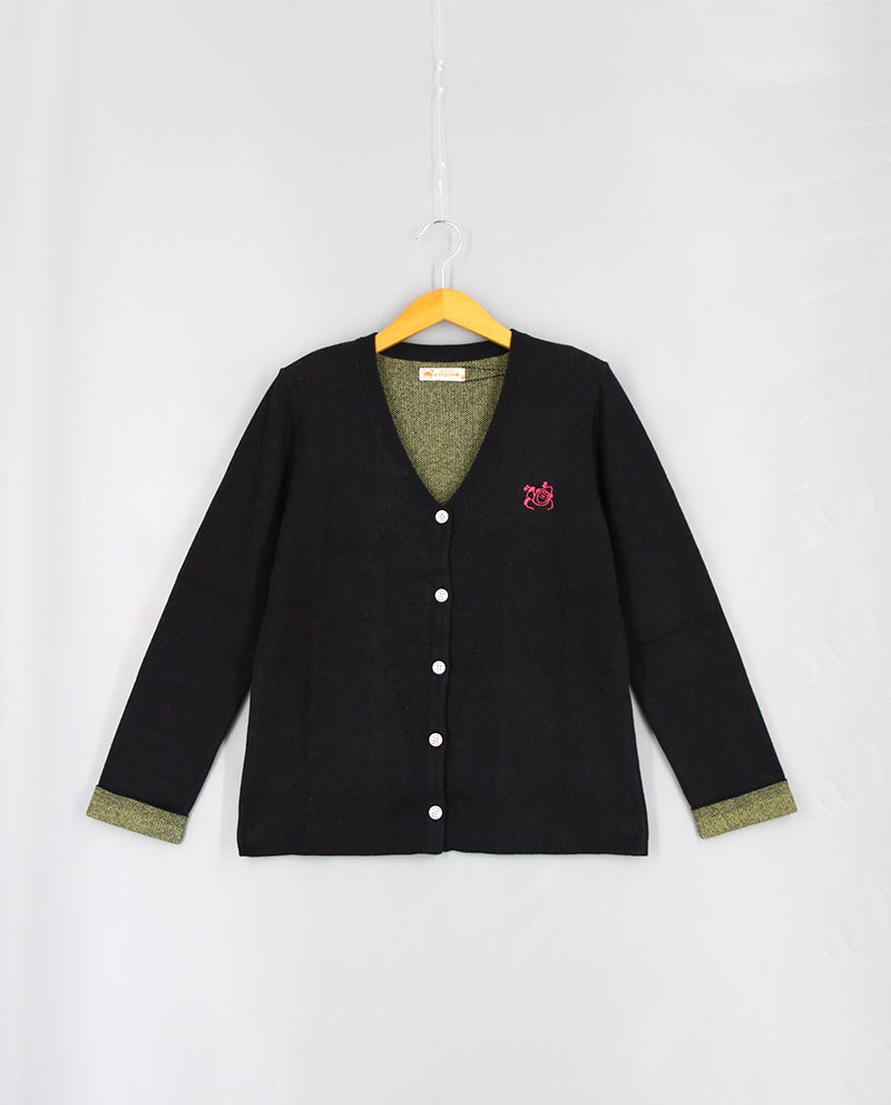 V領, 前中鈕扣開合, 猩猩刺繡, 芝麻針織布, 長袖, 合身外套
