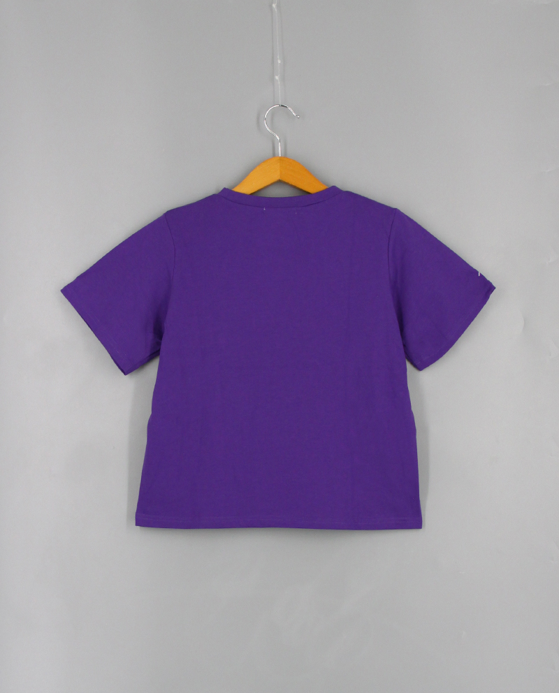 圓領, 跌膊款, 短袖, 前面的印花設計, 寬鬆款式