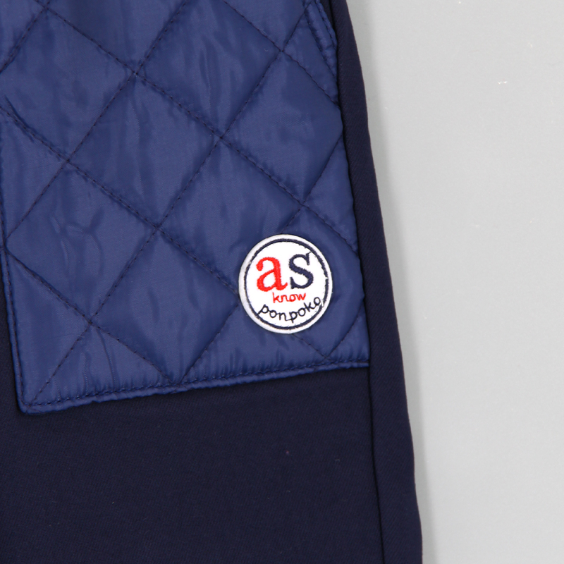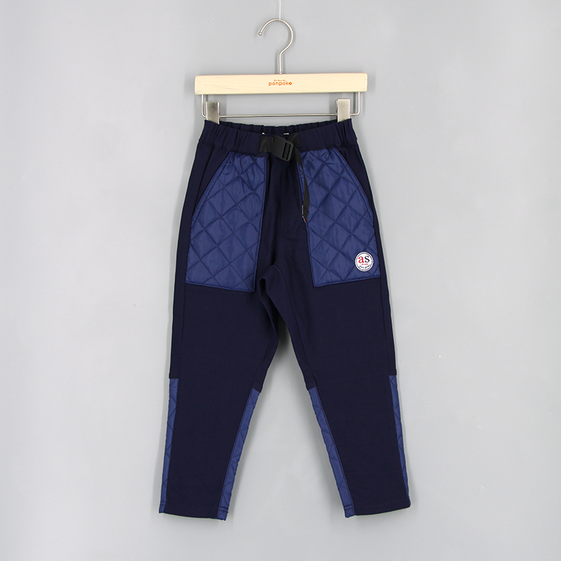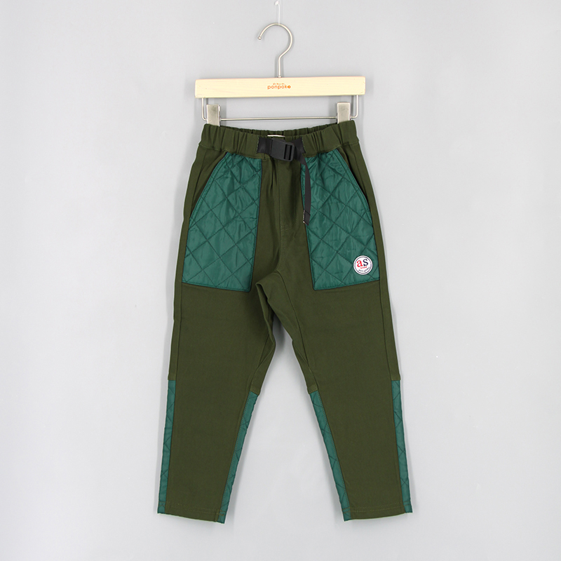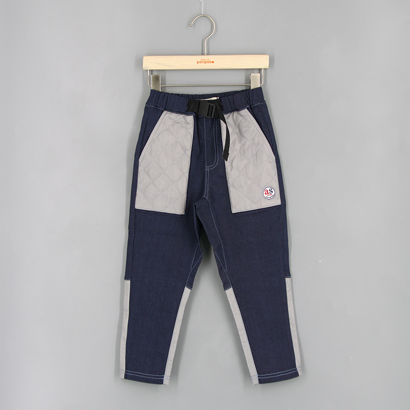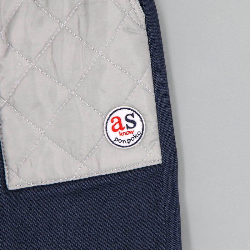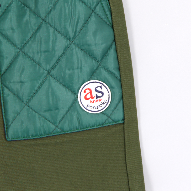彈性斜紋褲, 橡筋腰頭, 特色大口袋設計, 腰扣裝飾, As Know As刺繡章, 長褲, 拼色設計, 寬鬆款式, 拼布風格