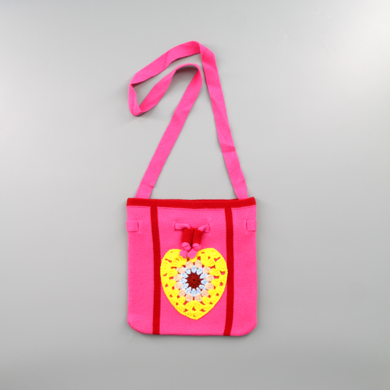 心型勾花布貼細節, 束繩袋口, 撞色間色邊, 全棉, 童裝尺寸