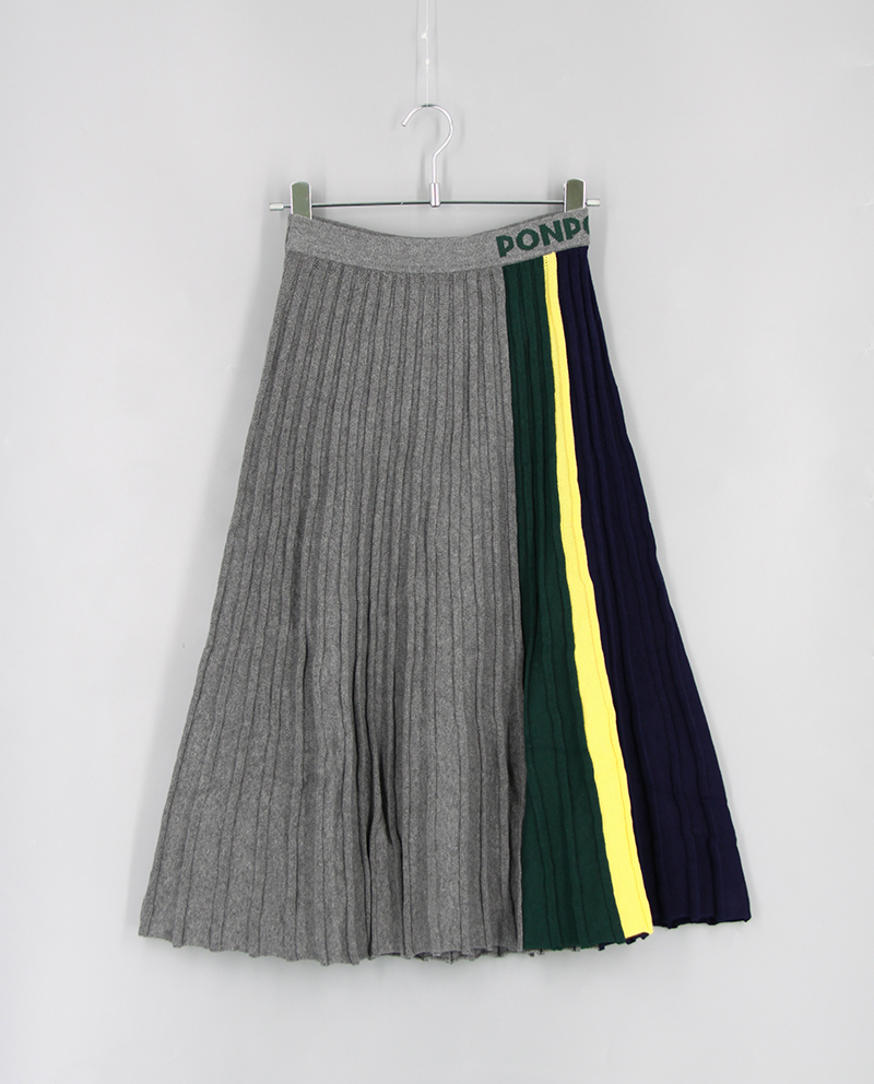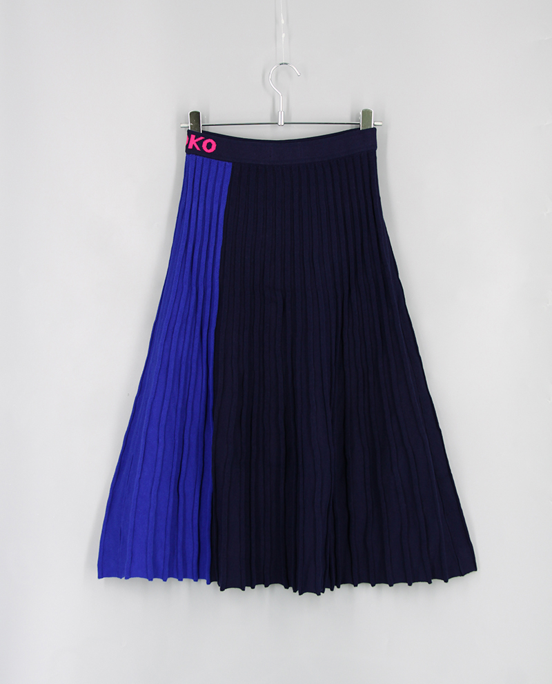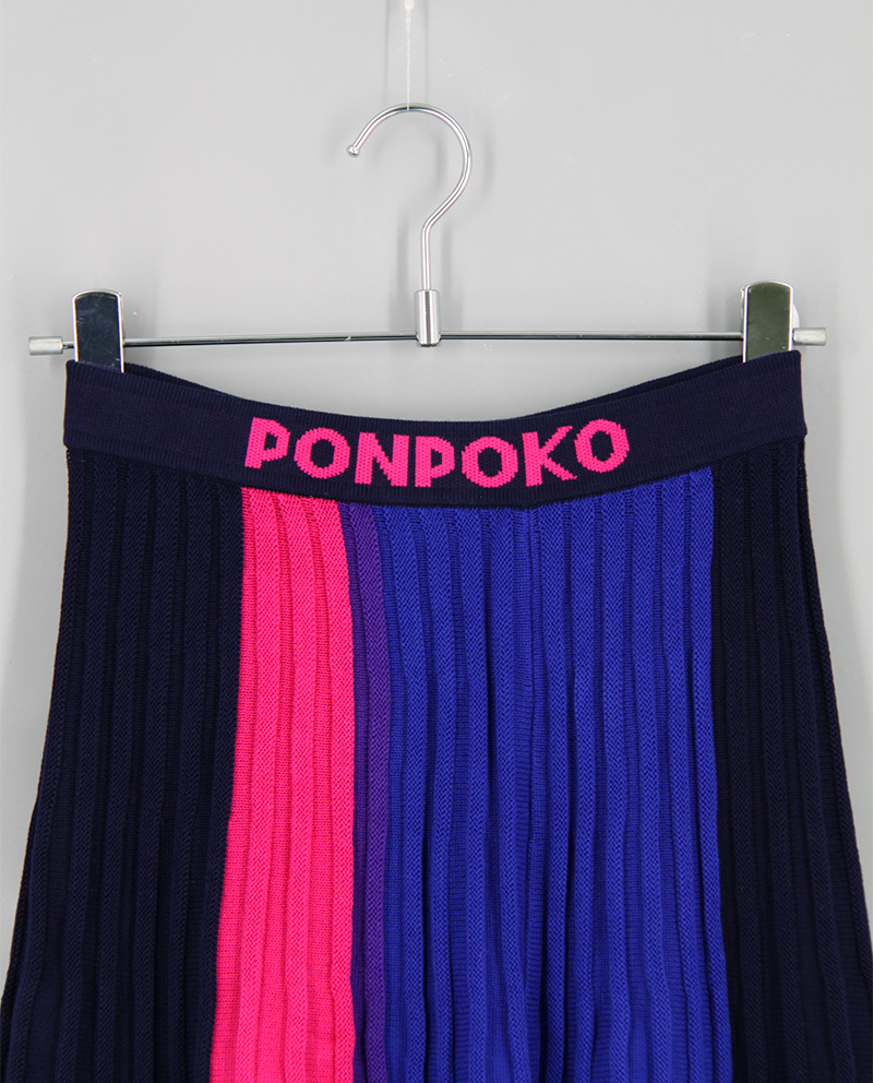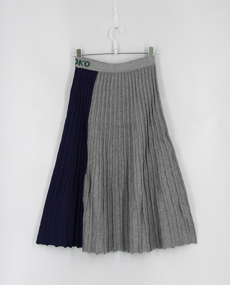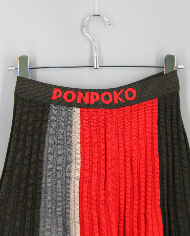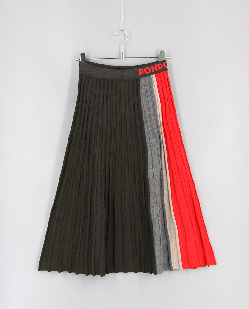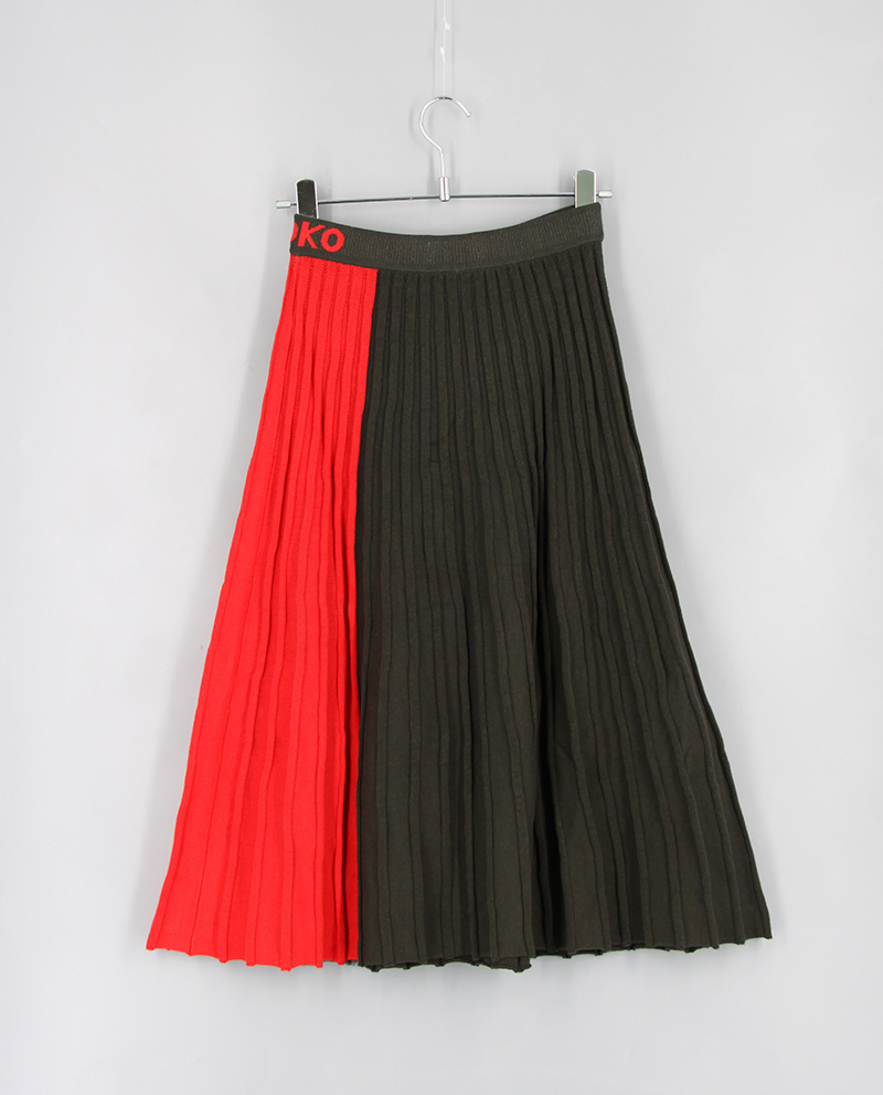 針織百褶裙款, 橡筋腰頭, 腰頭品牌字型針織, 立體針織坑條, 撞色風格, 全棉