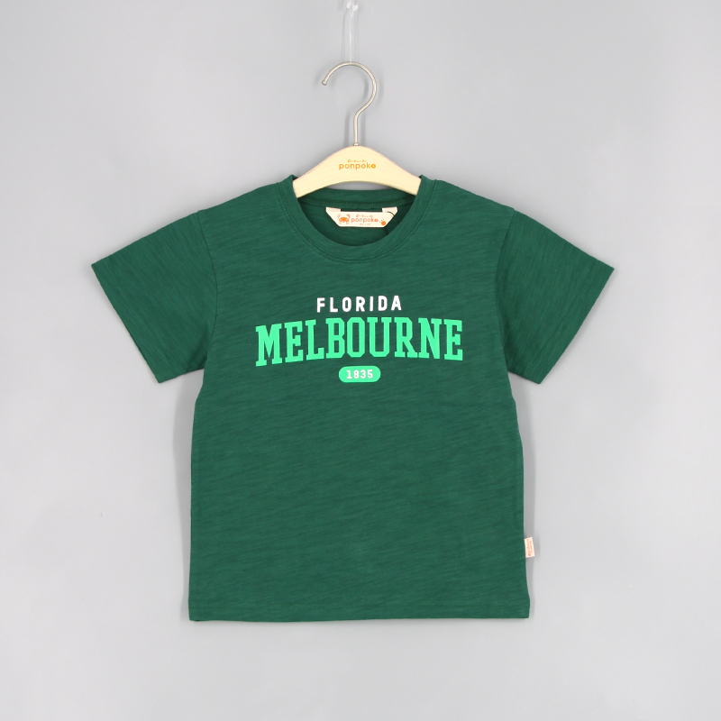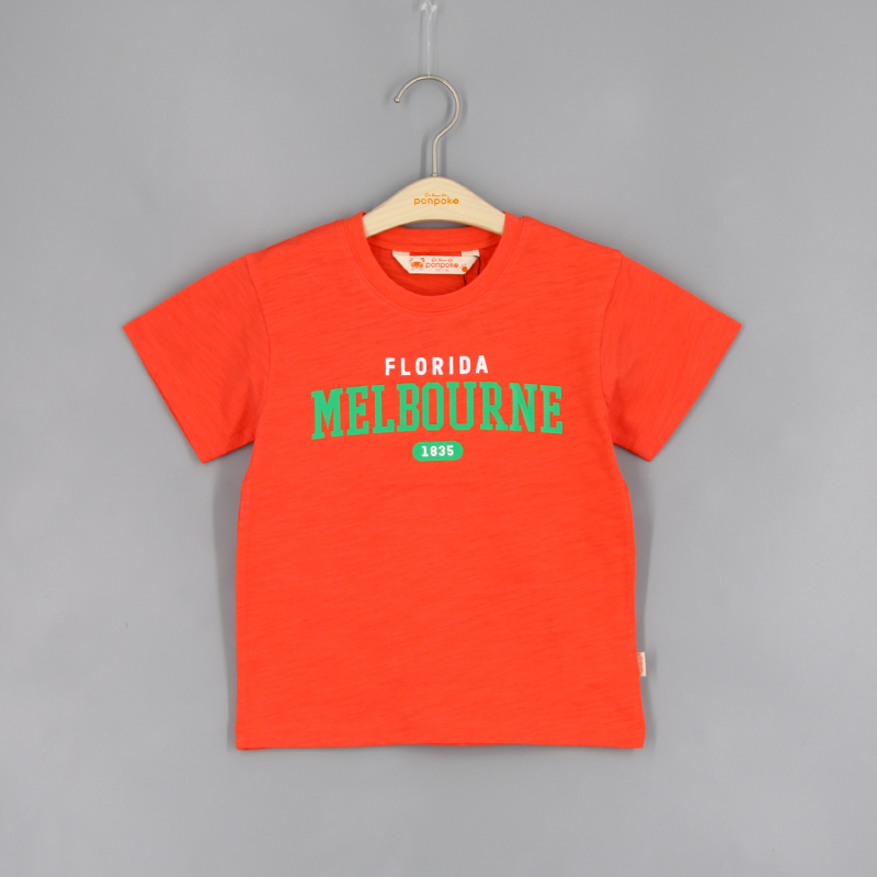 圓領, 短袖, 前面的撞色印花設計, 品牌小標籤細節, 合身款式, 竹節棉布, 全棉