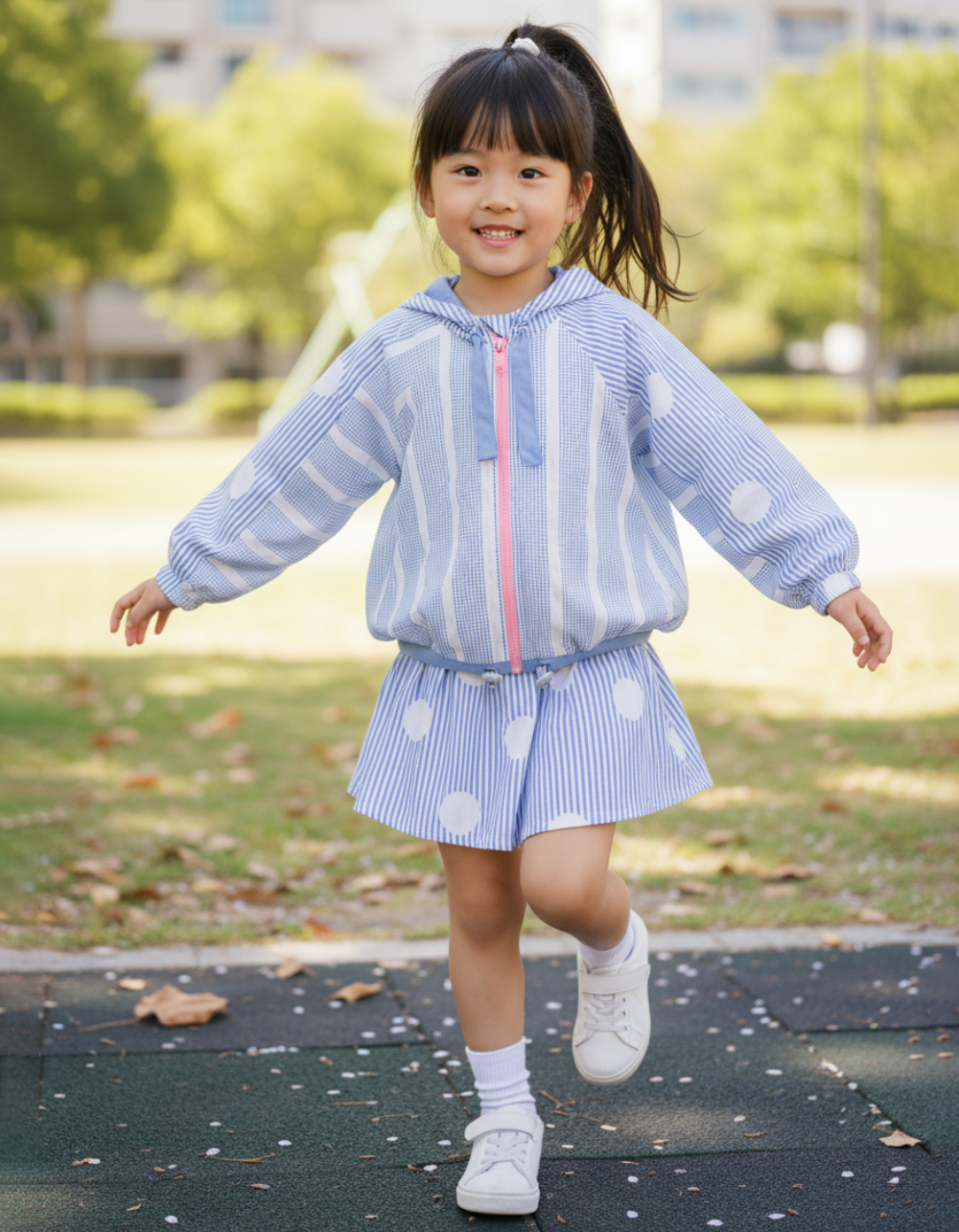 兩面可用款式, 鯨魚刺繡細節, 波點圖案, 橡根腰頭, 兩側口袋, 短裙, 大人同款