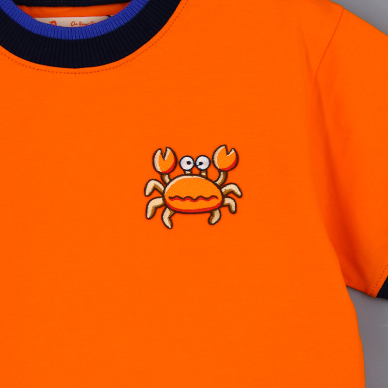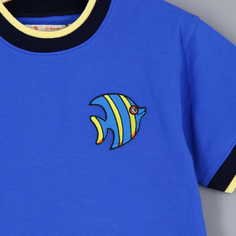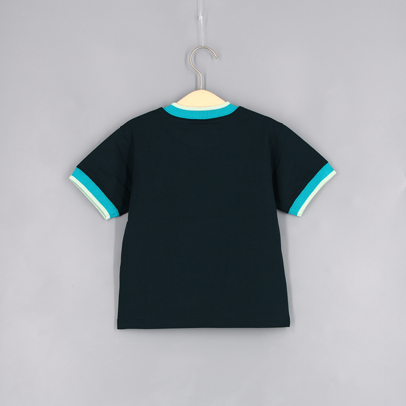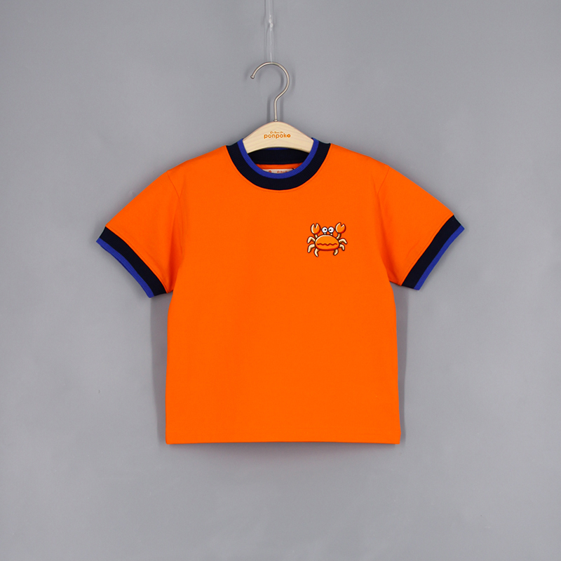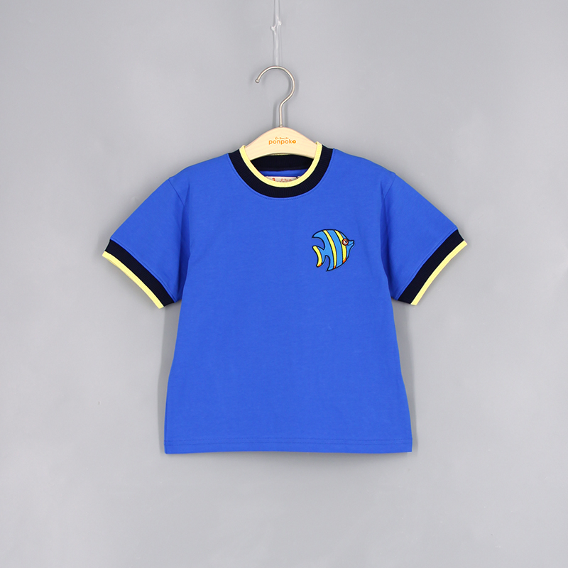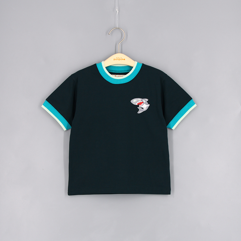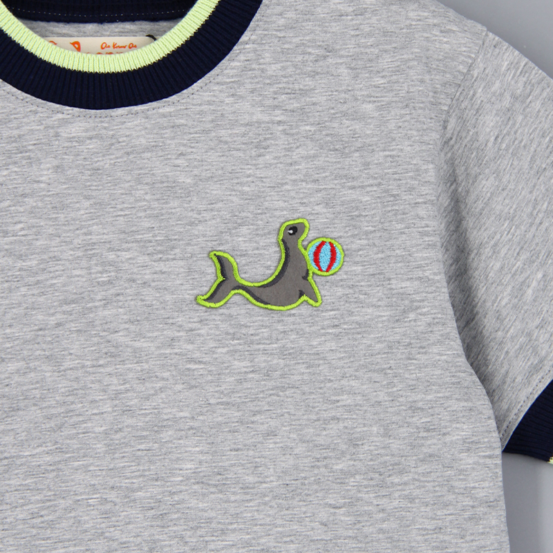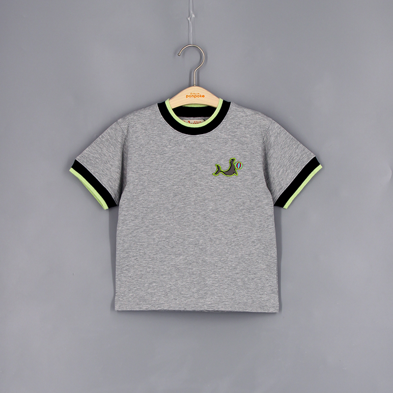 圓領, 短袖, 動物布貼, 撞色領口與手袖, 羅紋領口及手袖, 合身款式