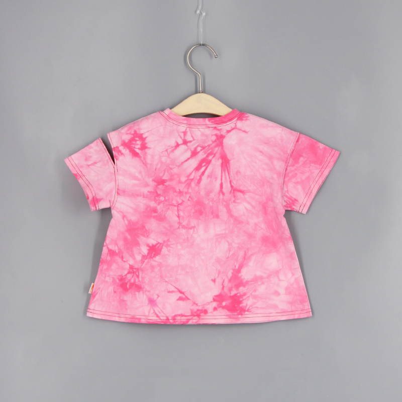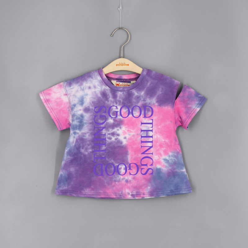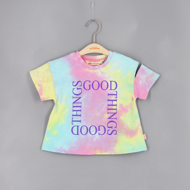 圓領, 開肩設計, 特色字母印花, 品牌小標籤細節, 扇形下擺, 紮柒布料, 寬鬆款式