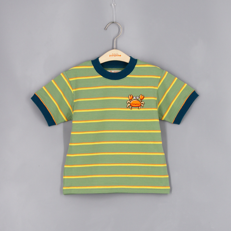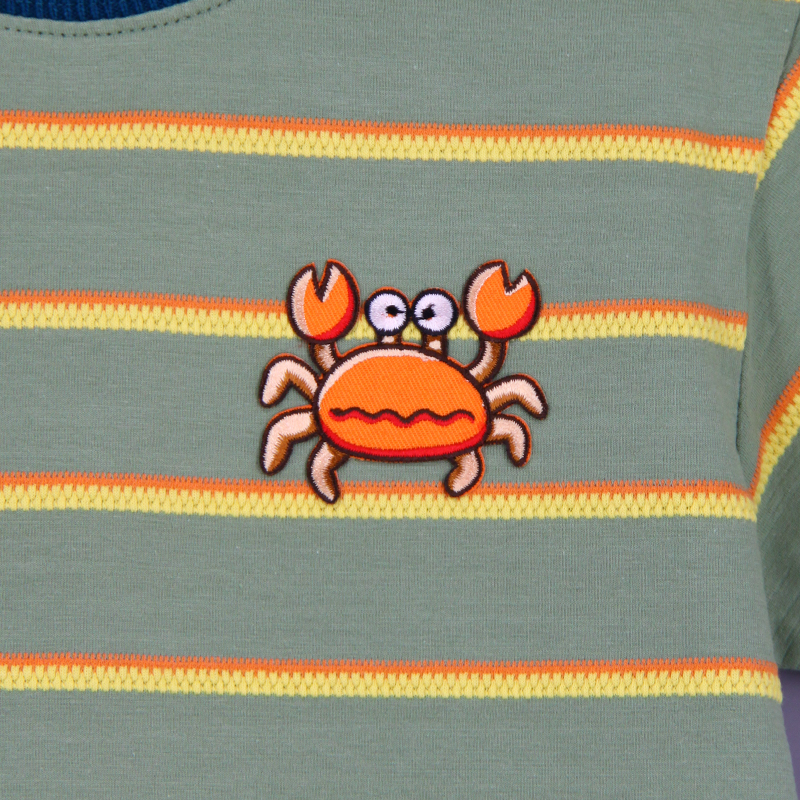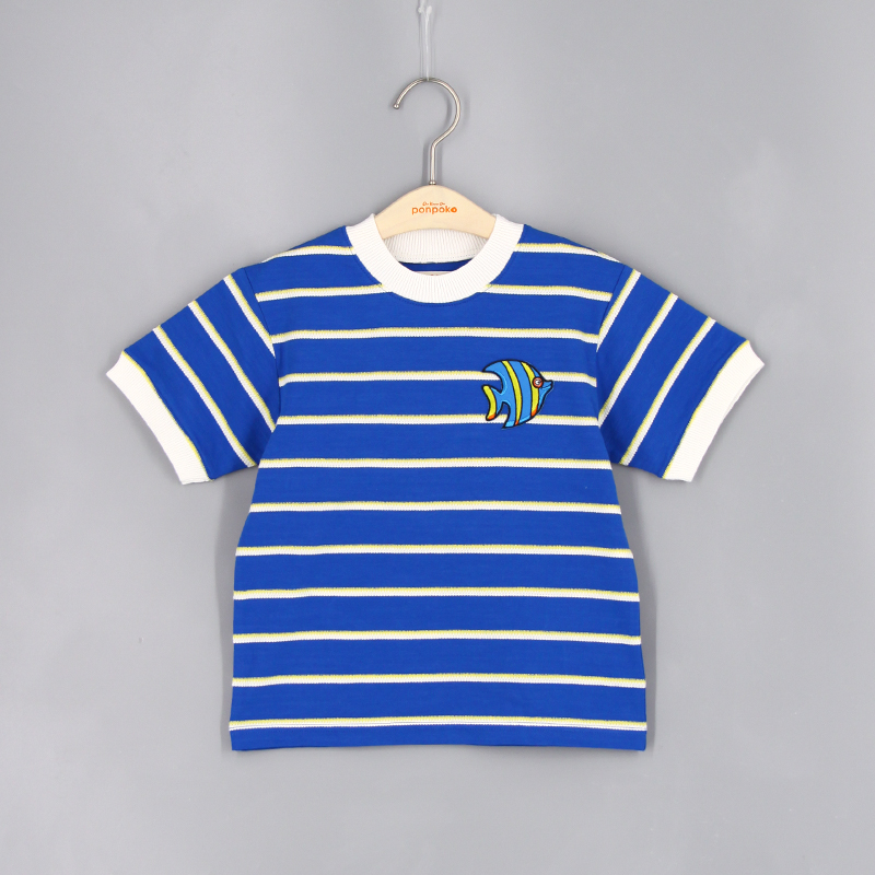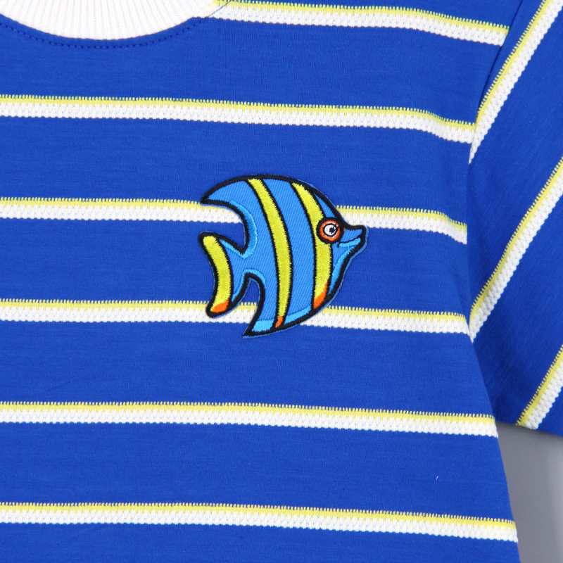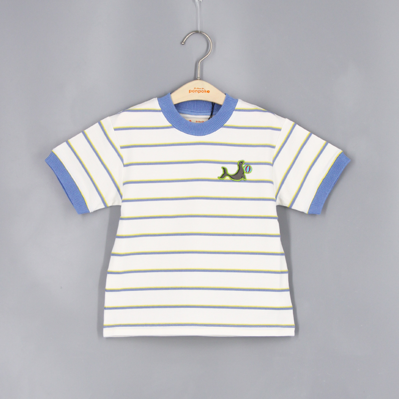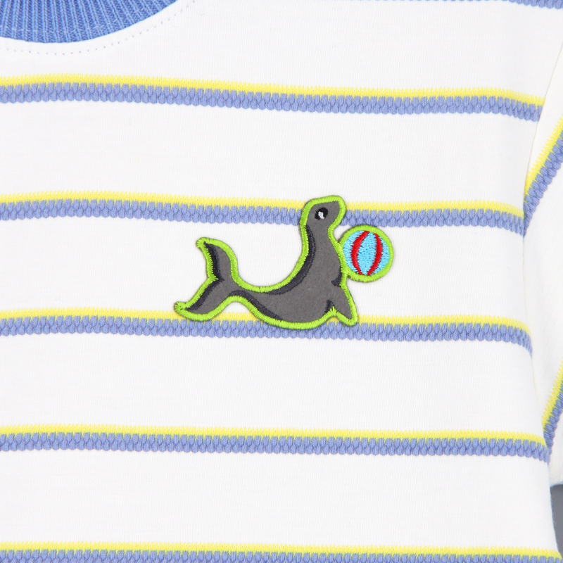 圓領, 短袖, 提花間紋布, 動物布貼, 羅紋領及手袖, 合身款式