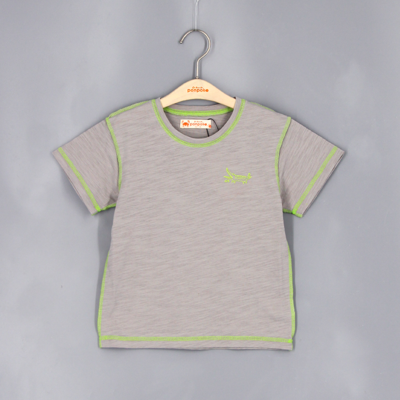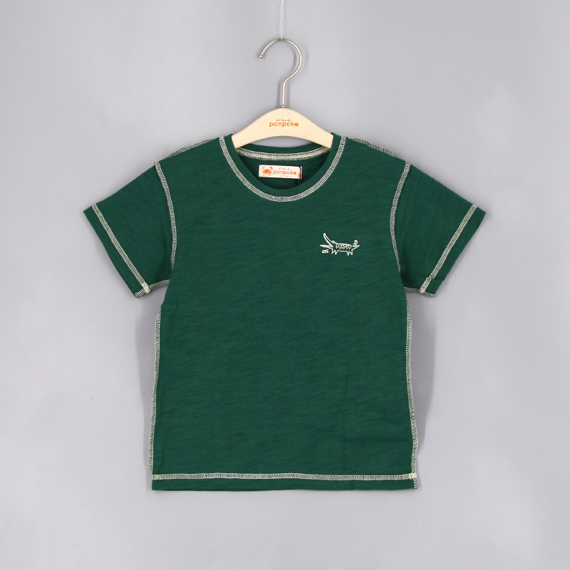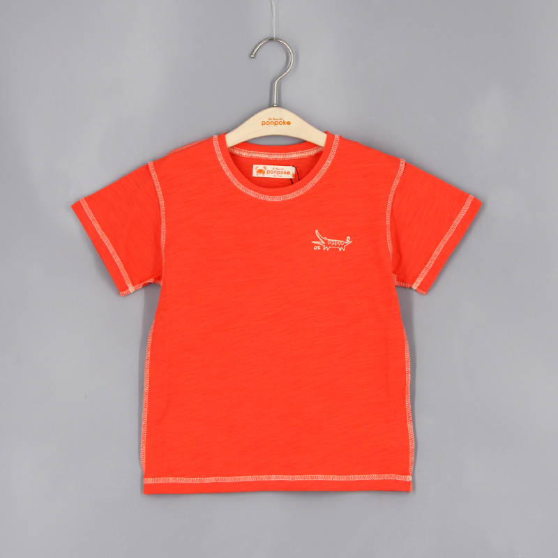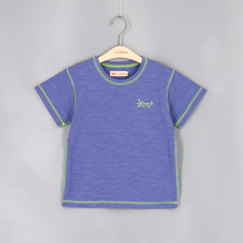 圓領, 鱷魚刺繡細節, 反車線設計, 撞色車線, 竹節棉布, 全棉, 合身款式