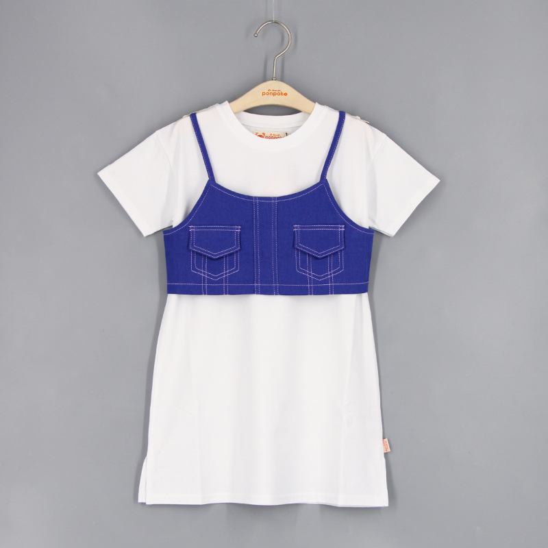 吊帶:撞色車線,假口袋, 彈性牛仔布