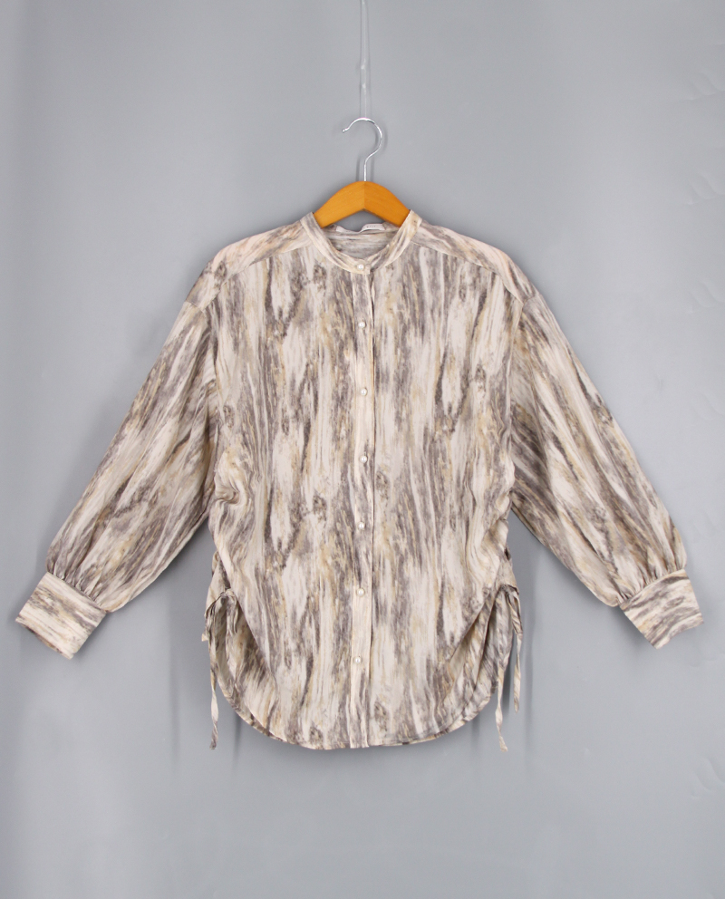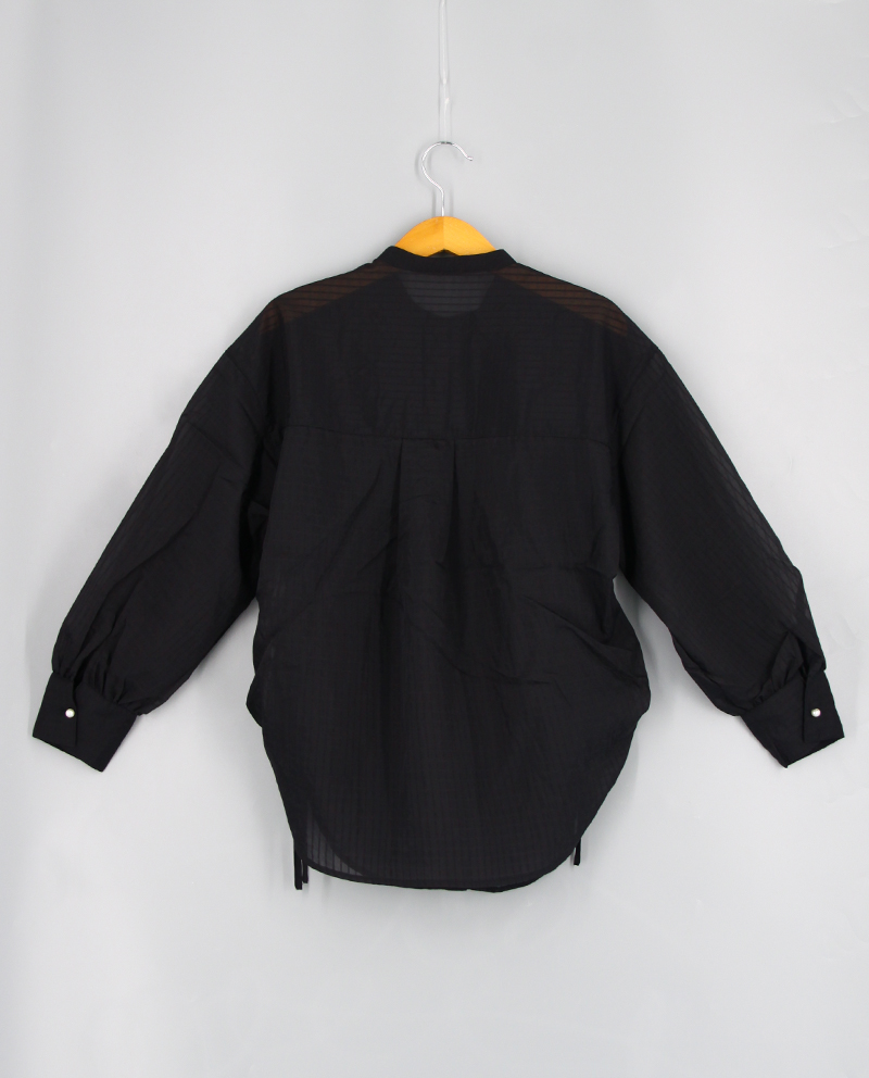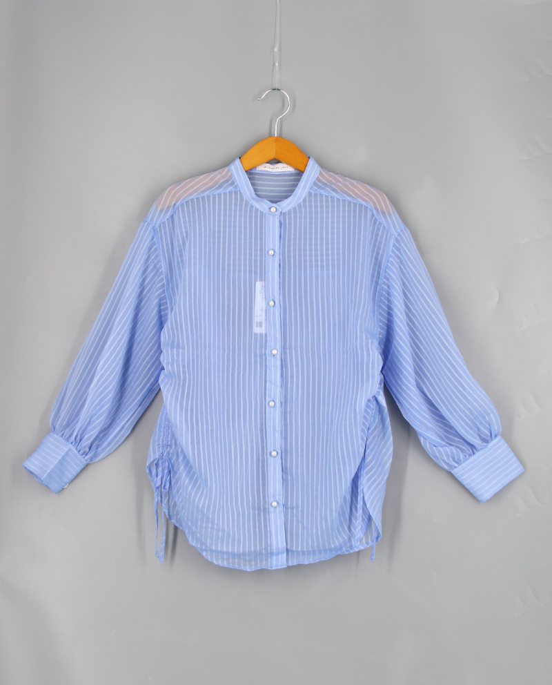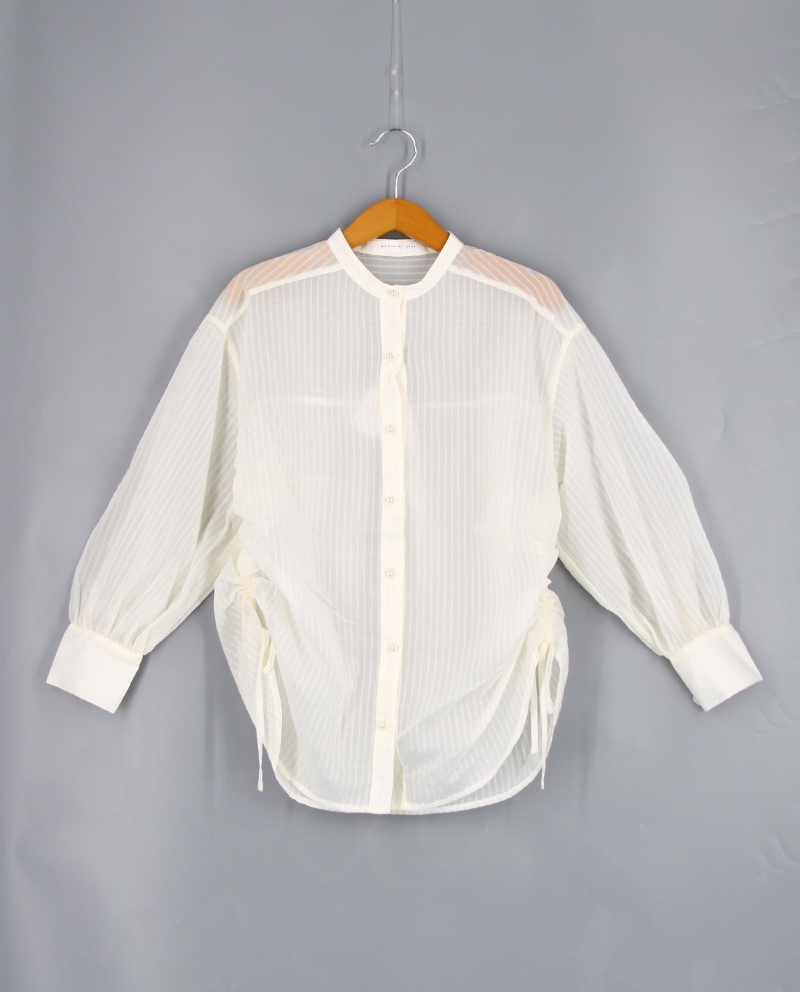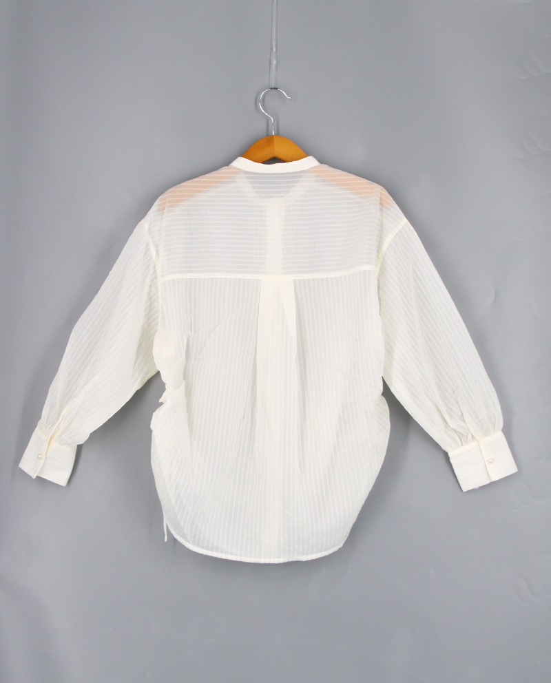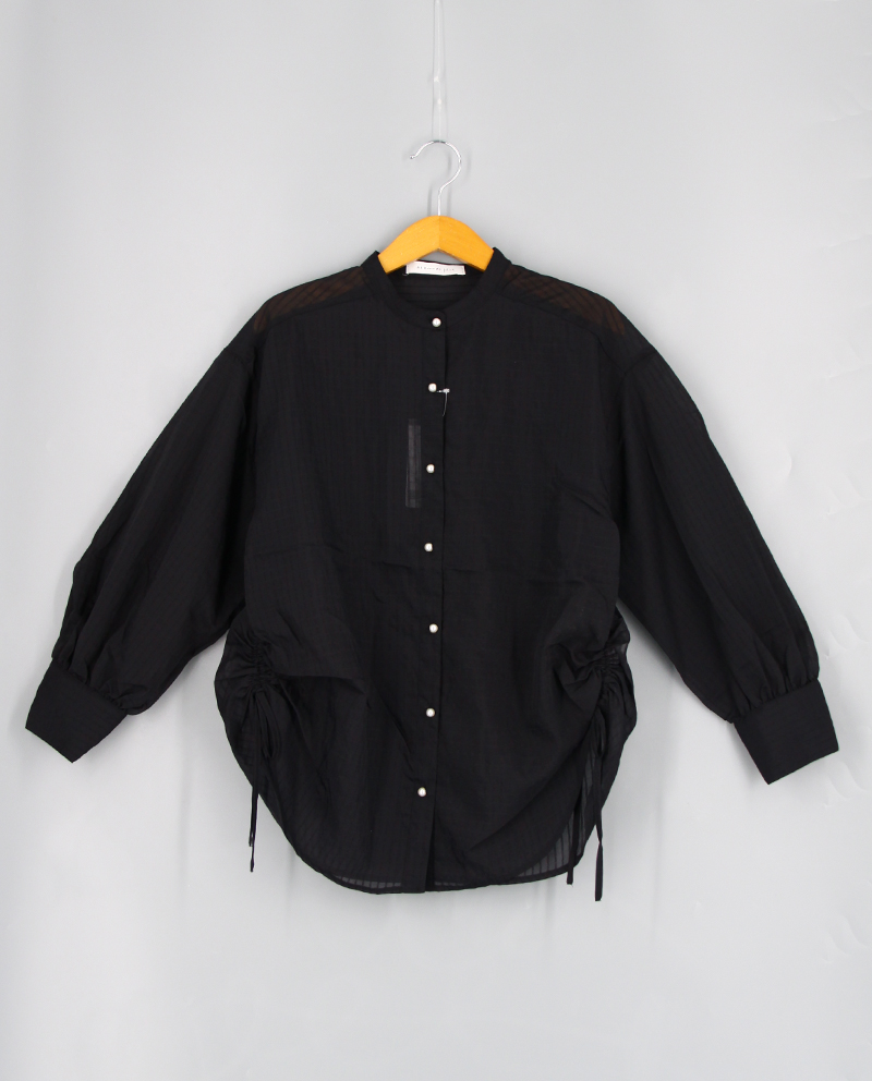 小企領, 圓領, 長袖, 前中鈕扣開合, 側面綁帶, 透膚布料
