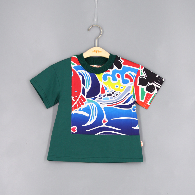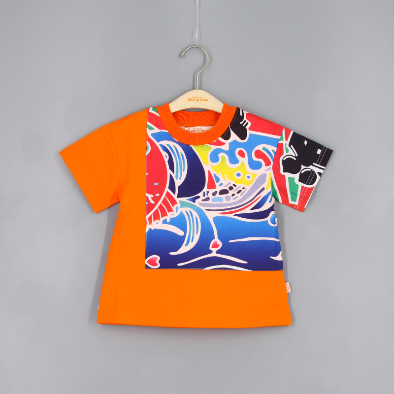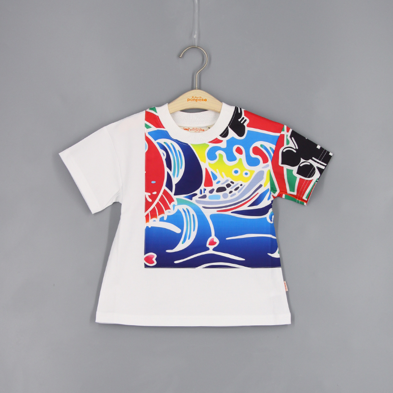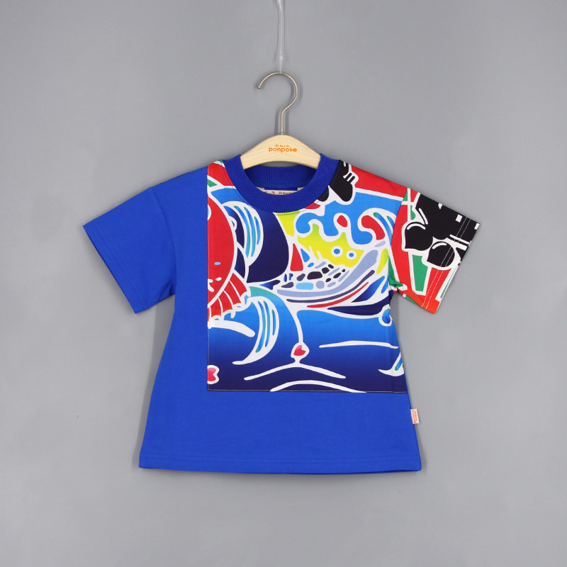 羅紋圓領, 跌膊款, 短袖, 品牌小標籤細節, 大漁祭印花棉布, 拼布風格, 寬鬆款式