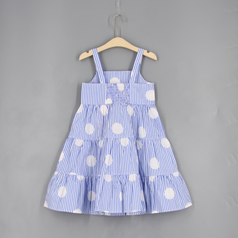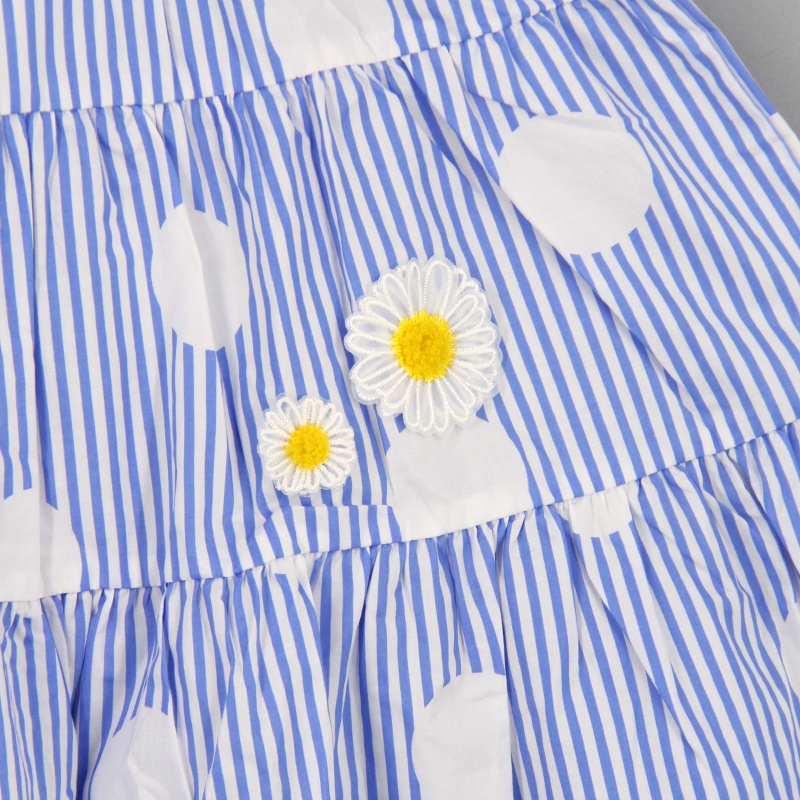 方領, 波點圖案,,吊帶裙, 修腰款, 後方橡筋鬆緊帶, 洋甘菊裝飾, 蛋糕裙, 合身款式