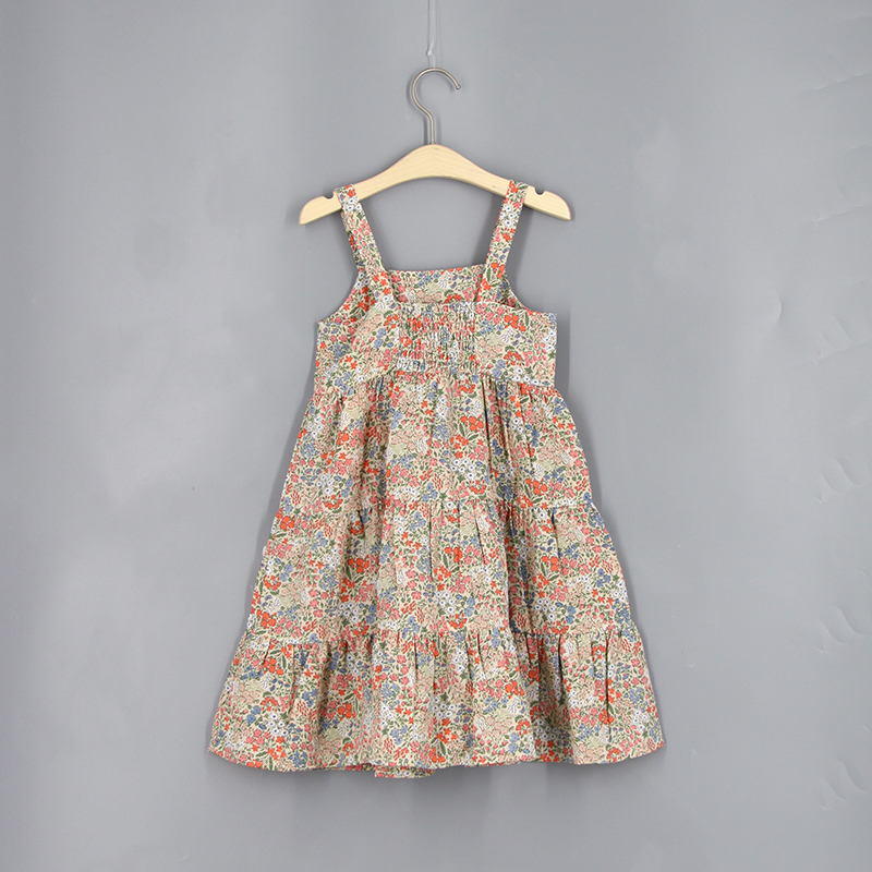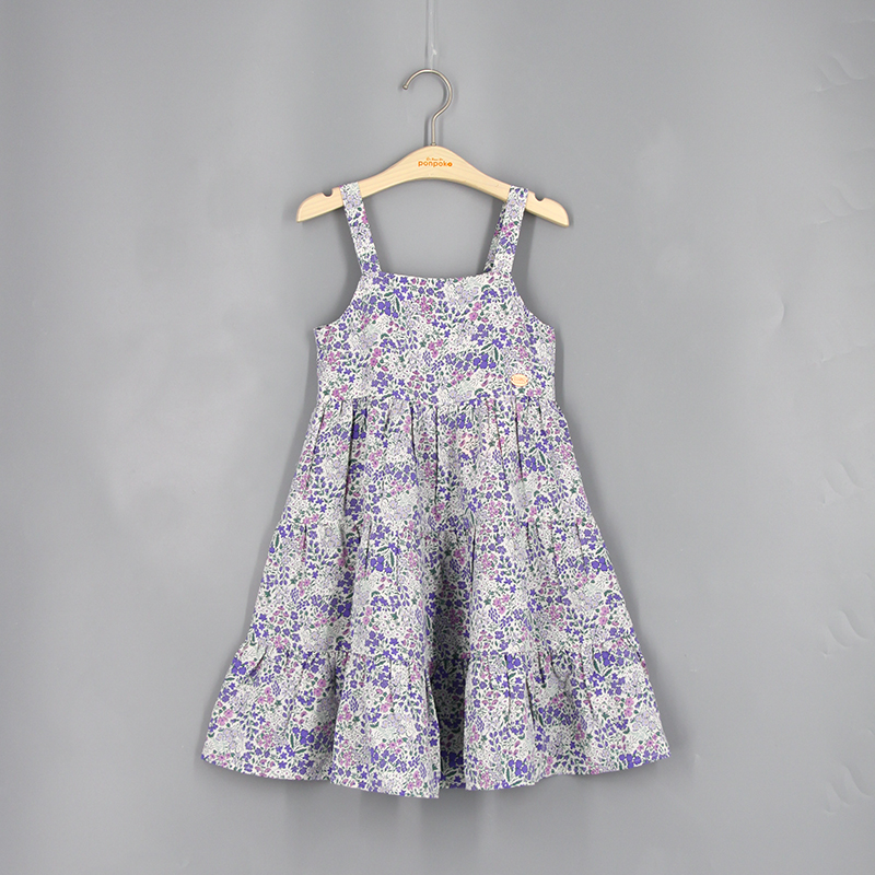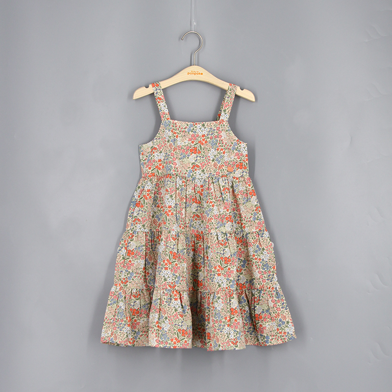 方領, 碎花圖案,,吊帶裙, 修腰款, 後方橡筋鬆緊帶, 品牌金屬章, 蛋糕裙, 合身款式