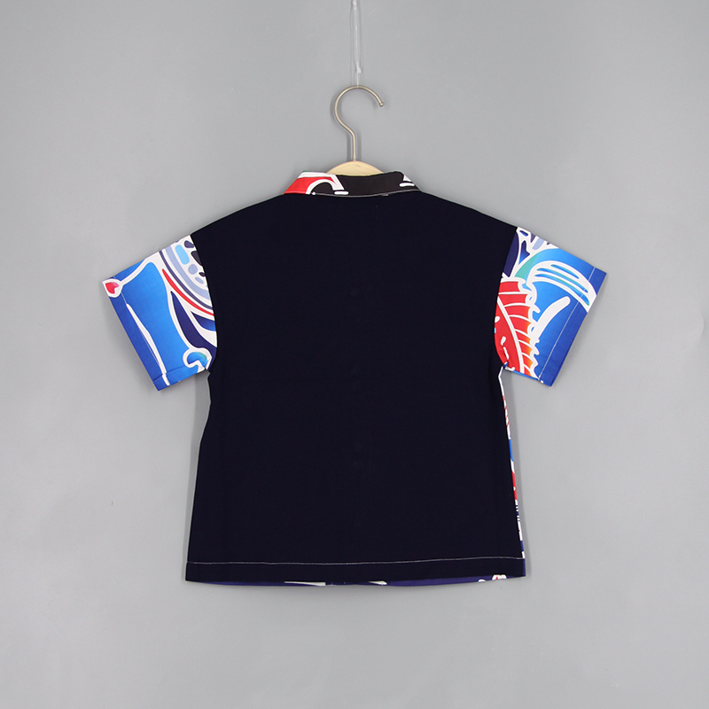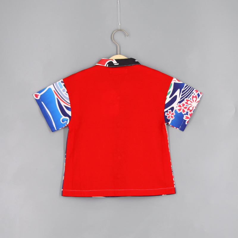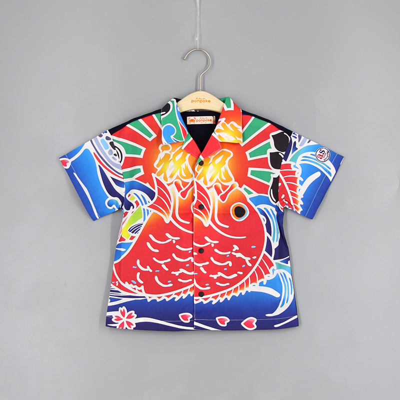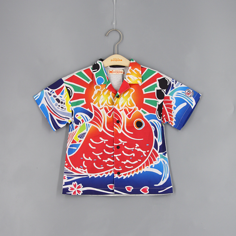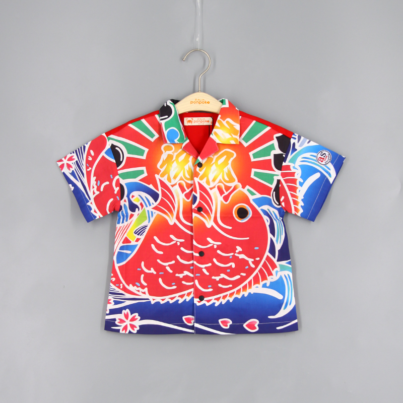 短袖襯衫, 翻領, 日系鯉魚印花布, 前中啪鈕開合, 寬鬆款式
