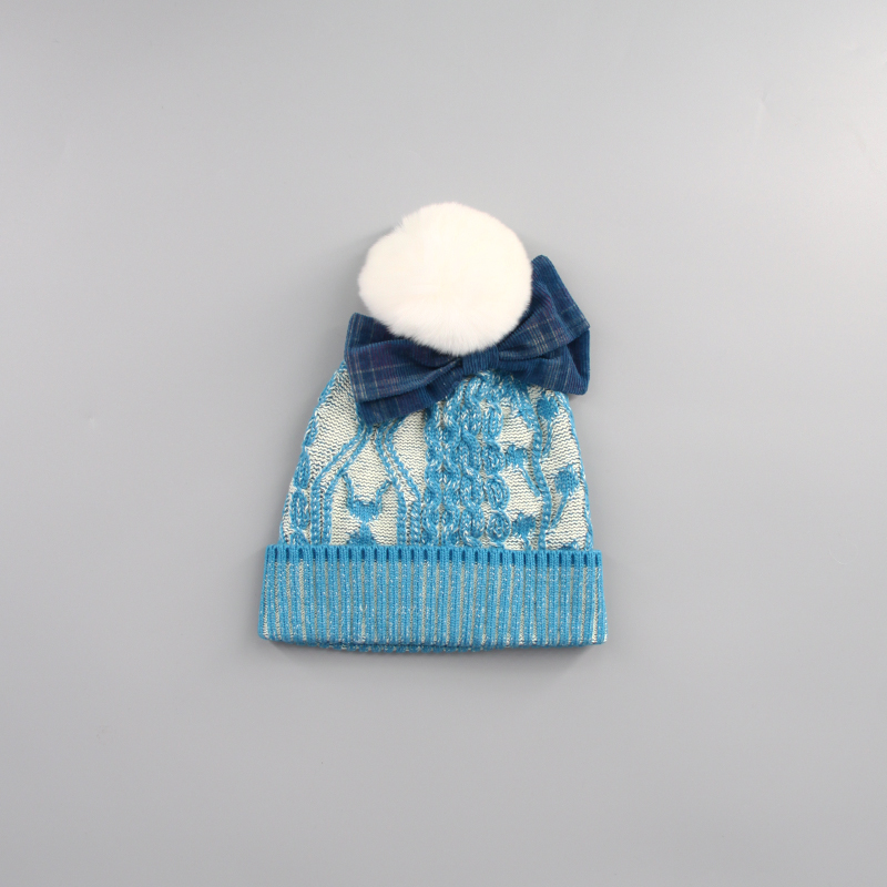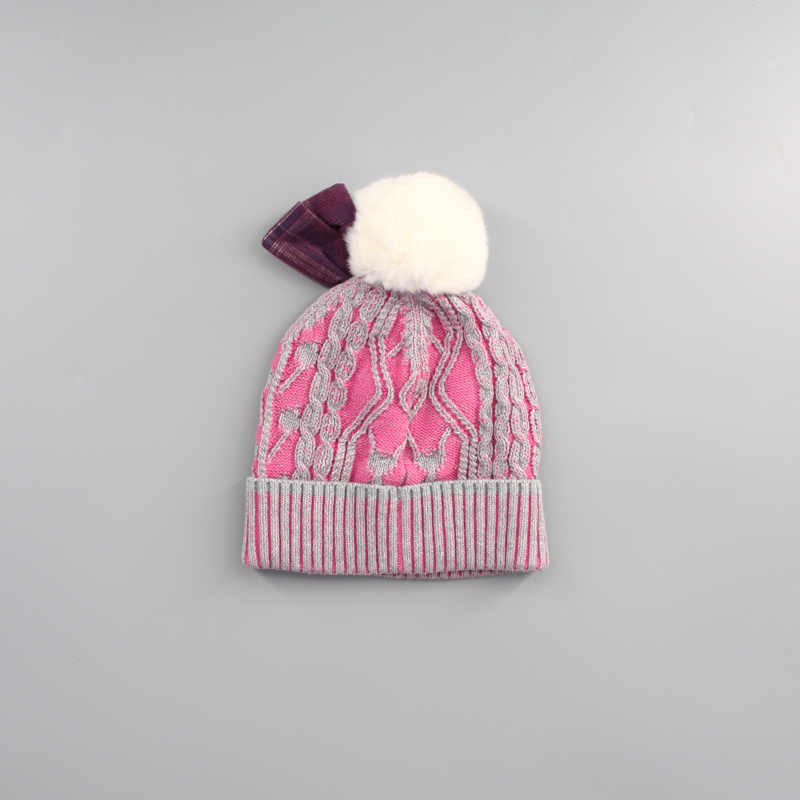 羅紋邊, 立體針織圖案, 蝴蝶結及毛球裝飾