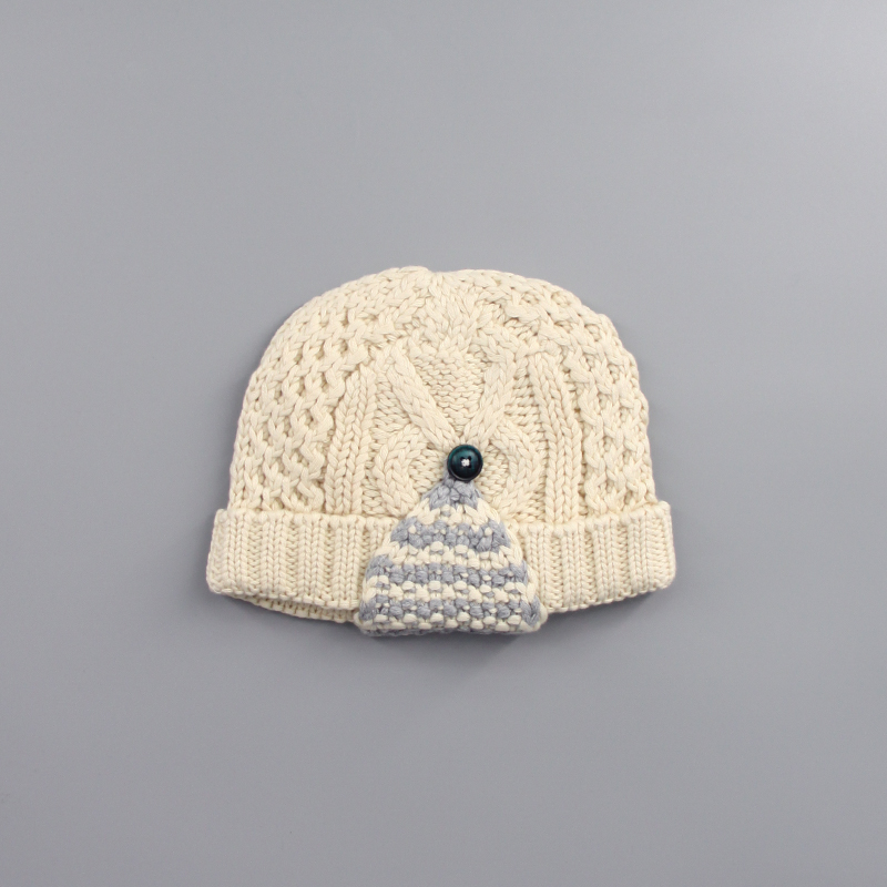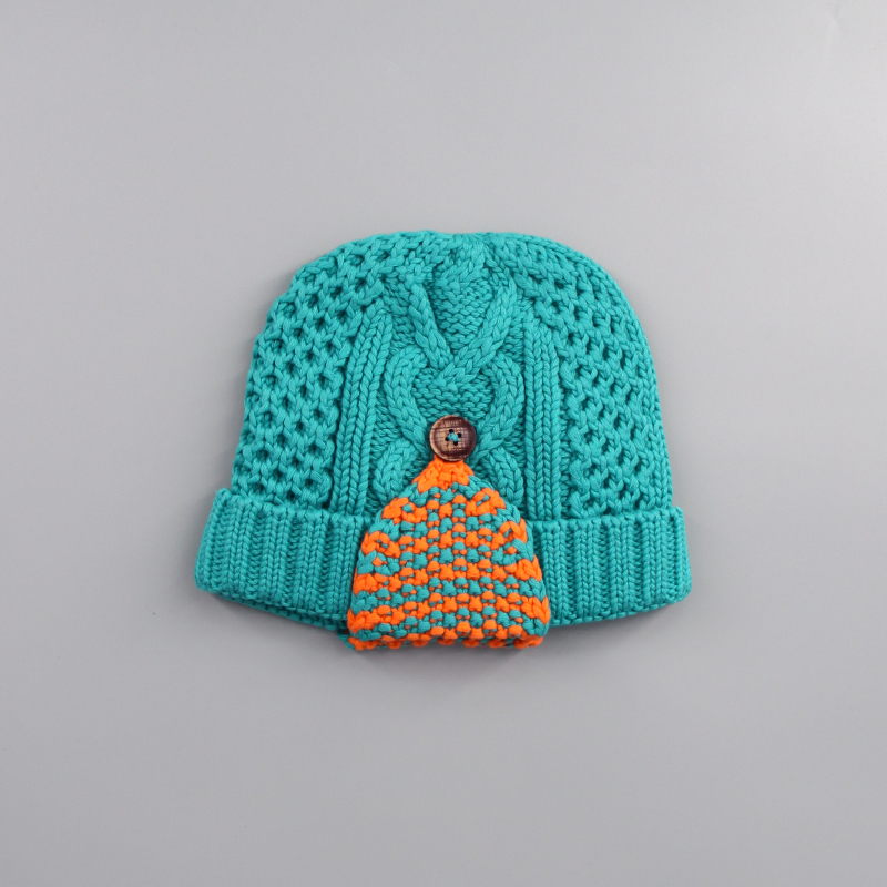 針織冷帽, 撞色裝飾, 羅紋邊, 鈕扣裝飾