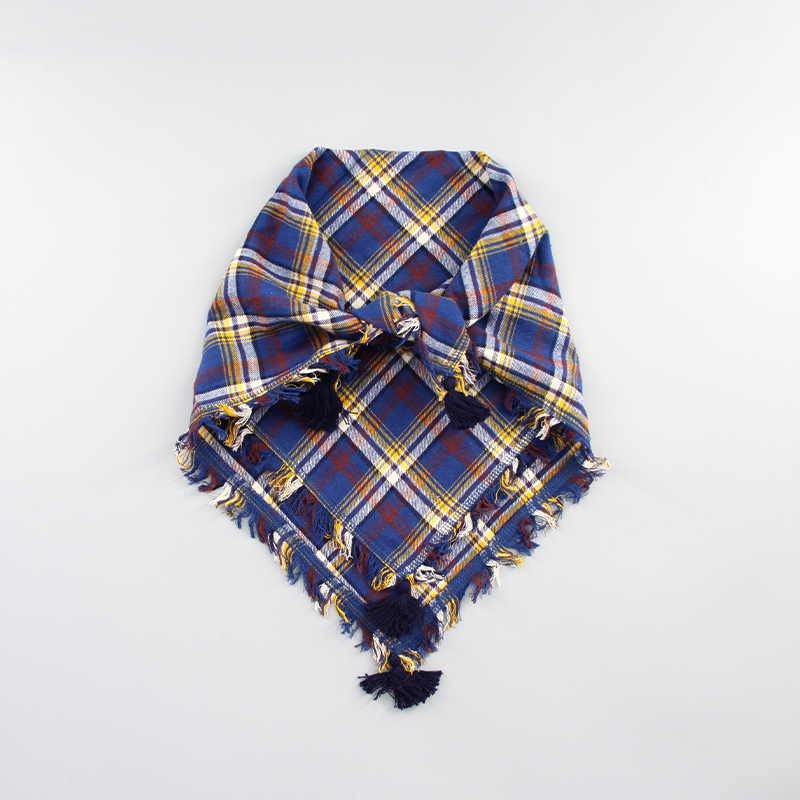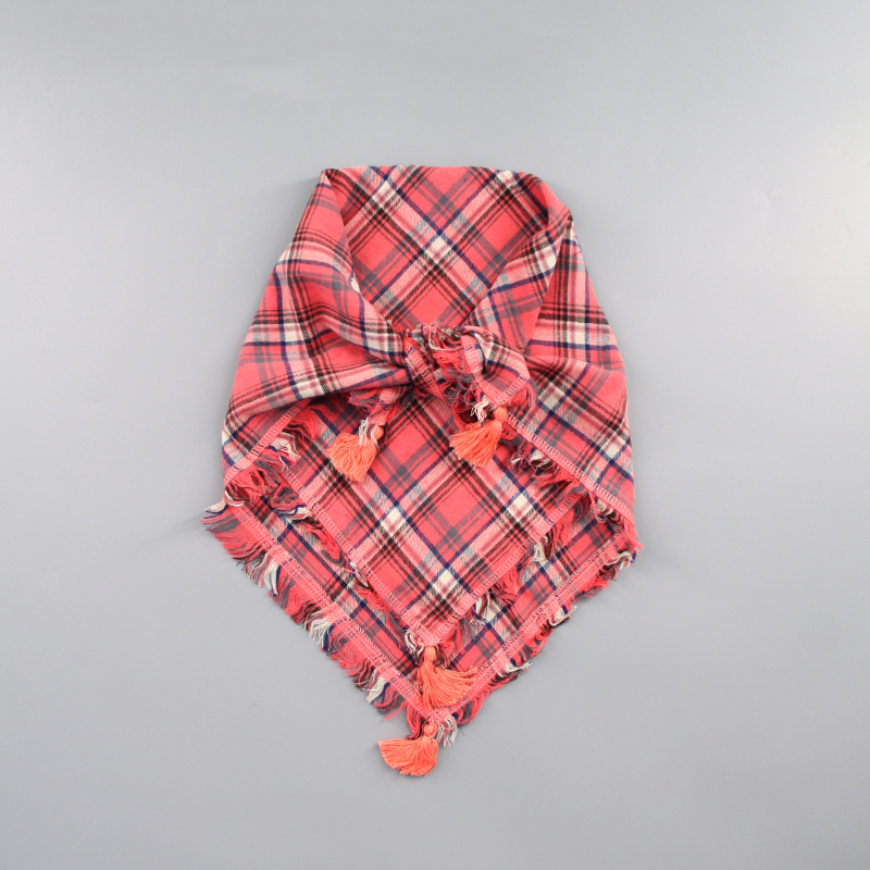 撞色格仔圖案, 流蘇邊, 正方形領巾