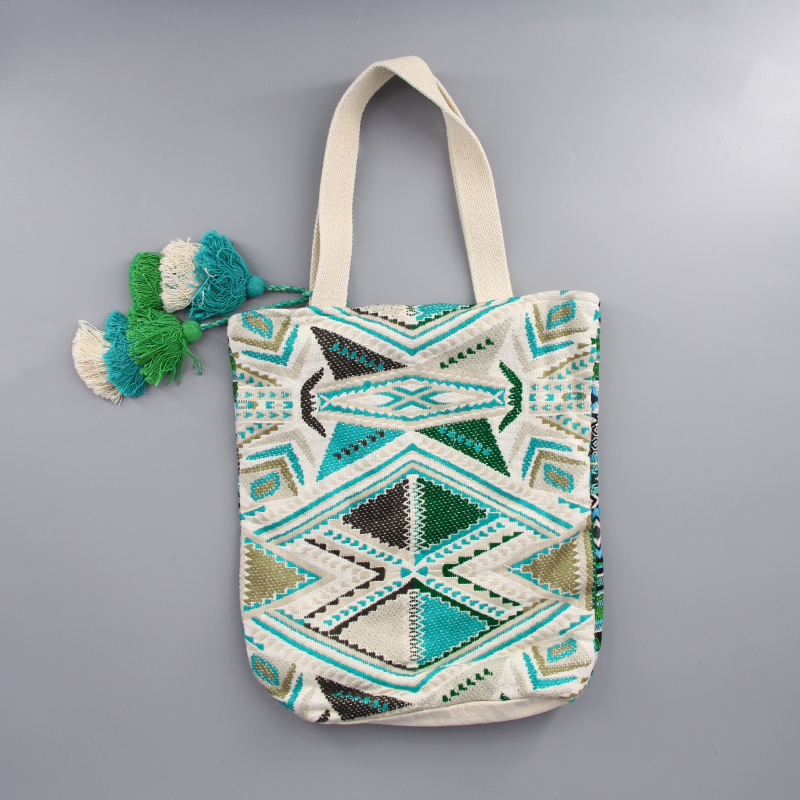 流蘇吊飾, 正反不一的圖騰圖案, 拼色風格, 內袋, 磁石貼開合