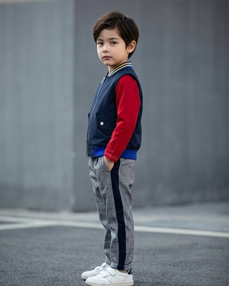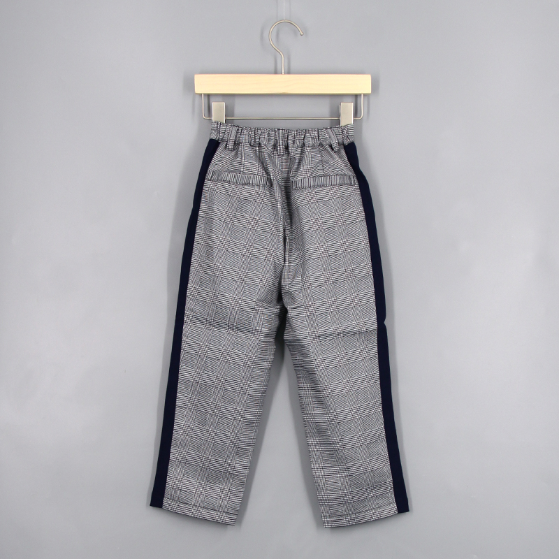 橡筋腰頭, 品牌金屬章, 兩側口袋, 後方假口袋, 撞色邊條, 格仔圖案, 寬鬆版型