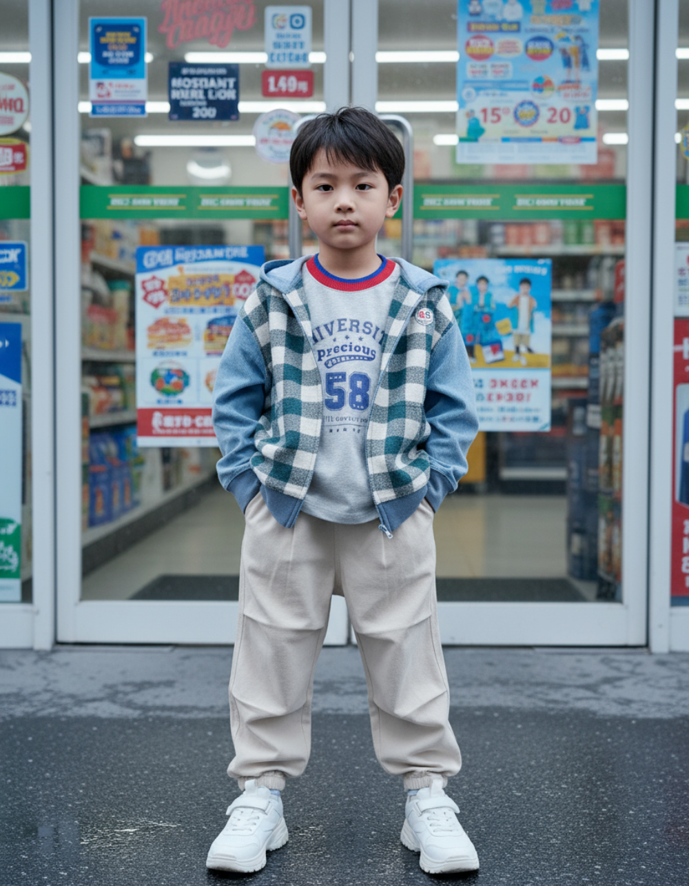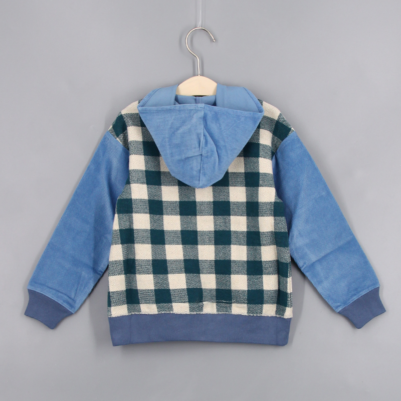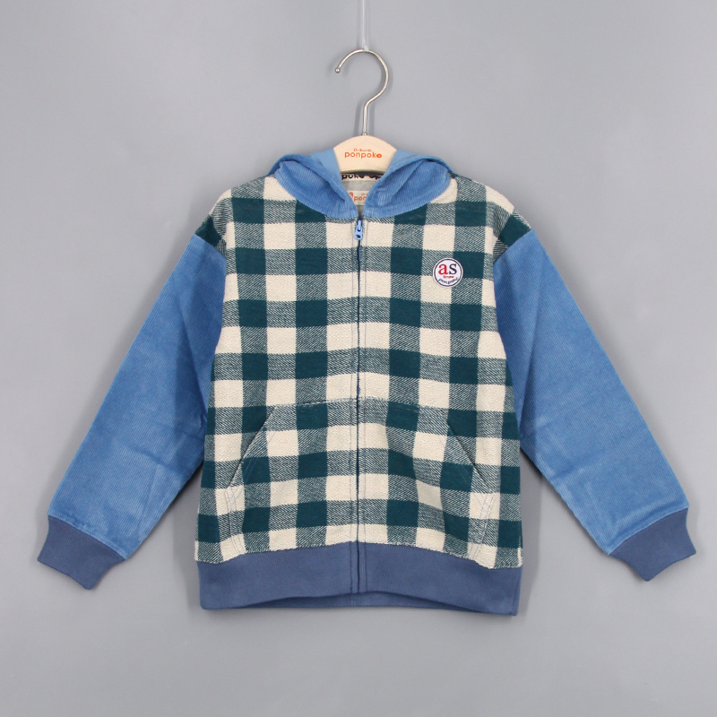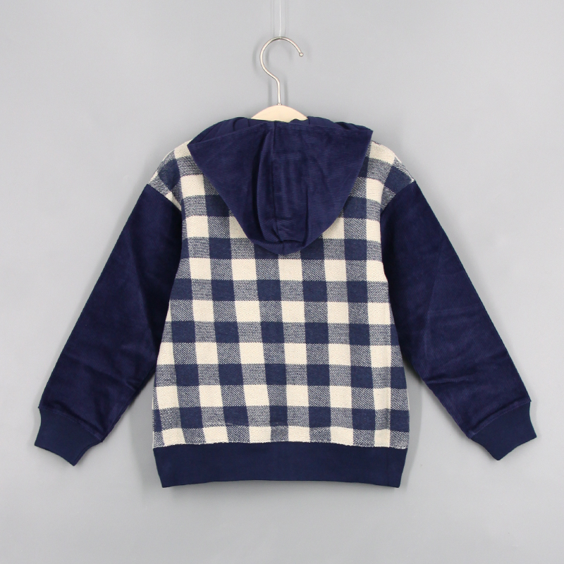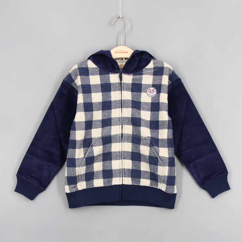 前中拉鏈開合, 羅紋手袖, 羅紋衫腳, 前方口袋, As Know As 刺繡章, 燈芯絨拼線圈底棉布, 格仔圖案, 連帽款式, 合身款式