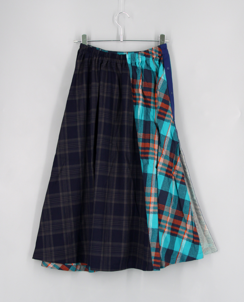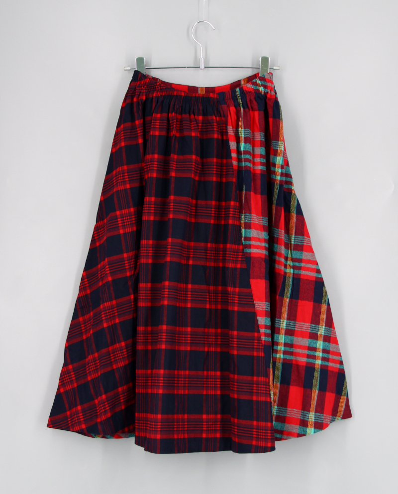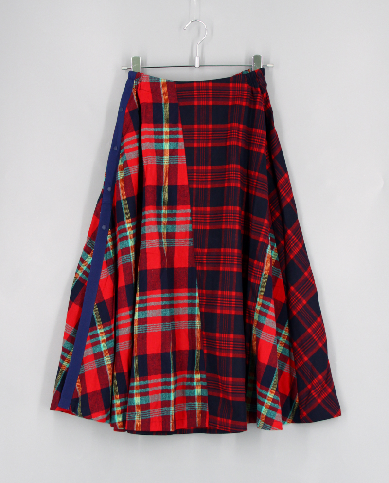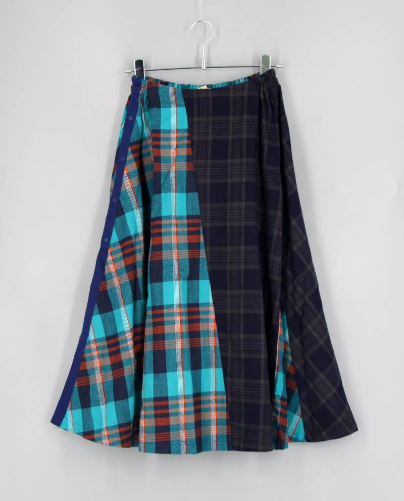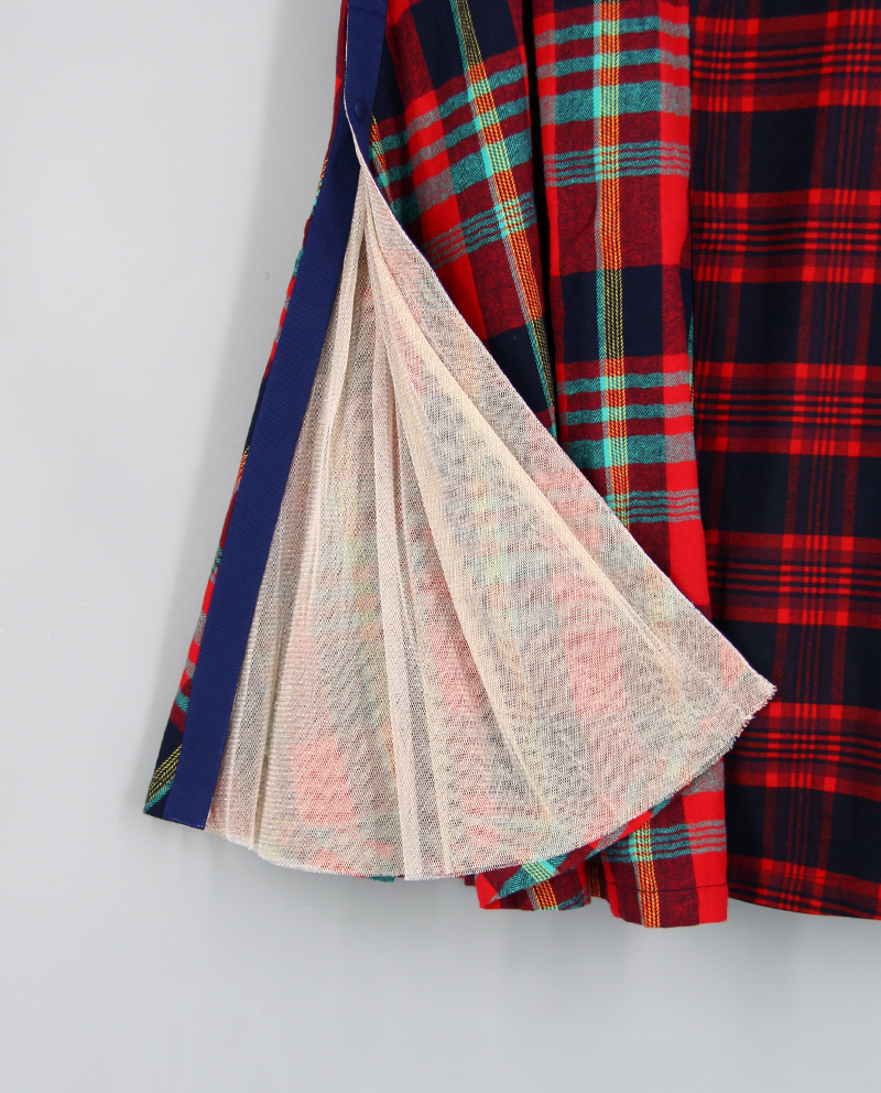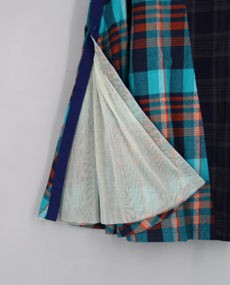 橡筋腰頭, 格仔圖案, 側開長裙, 網紗拼接, 拼布風格