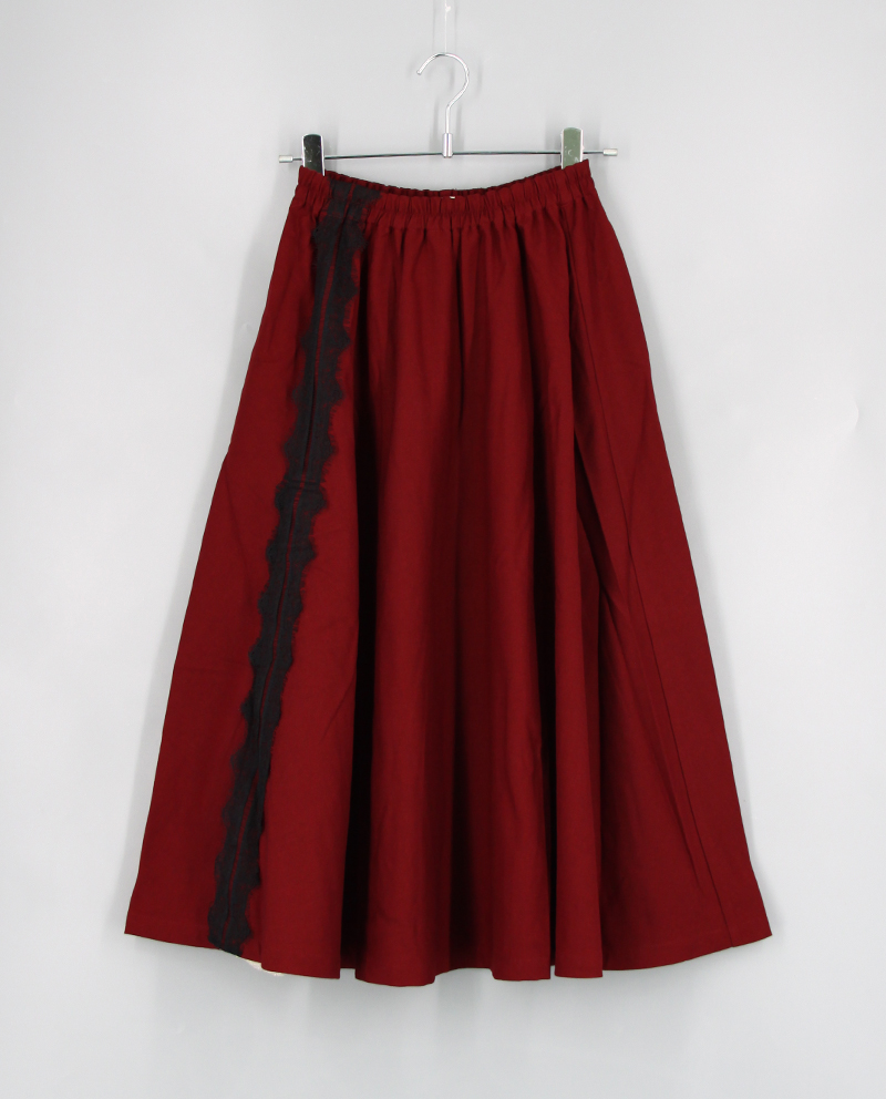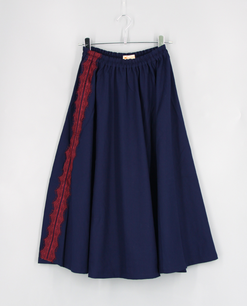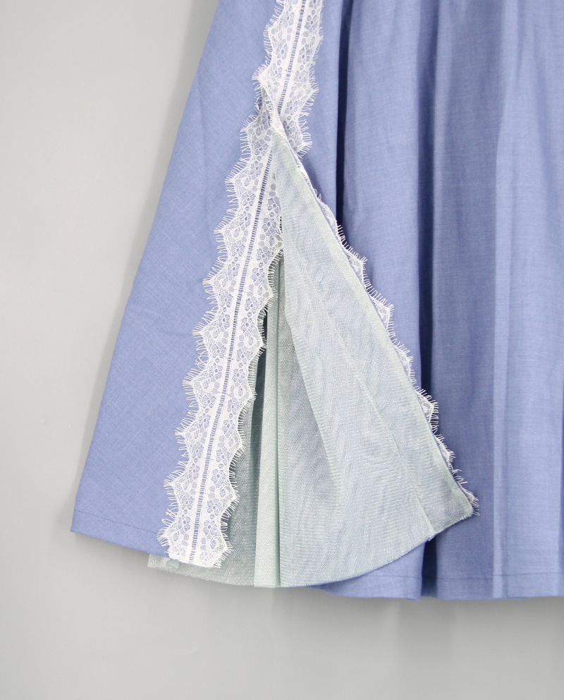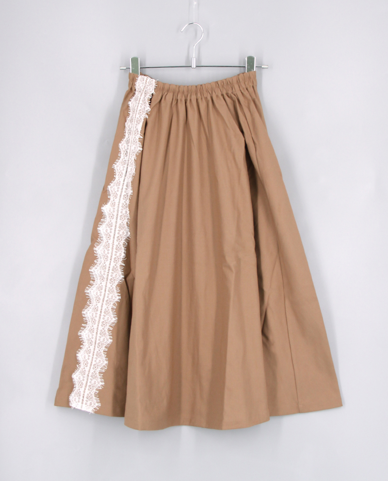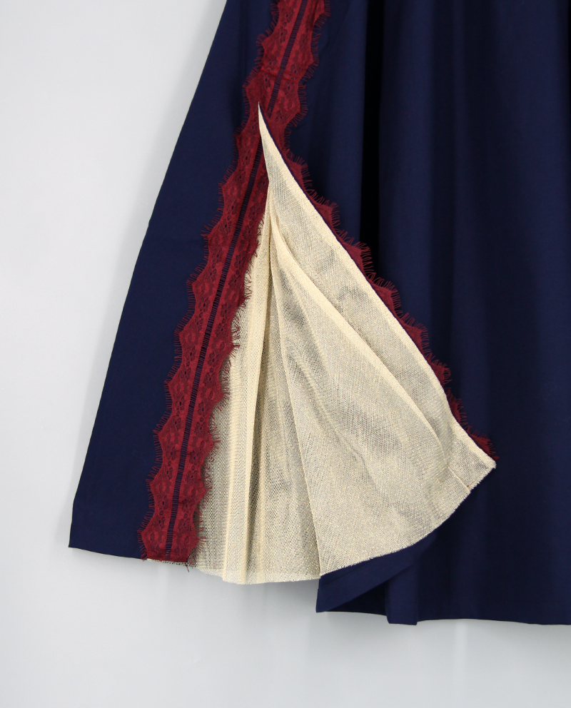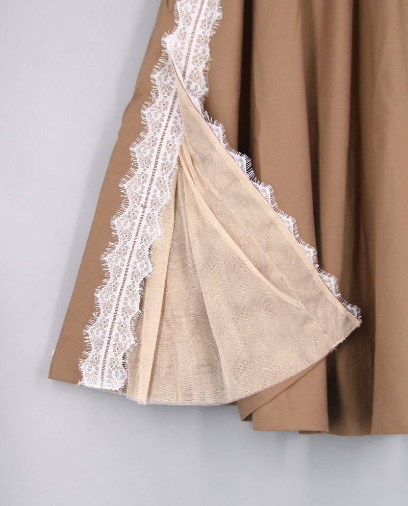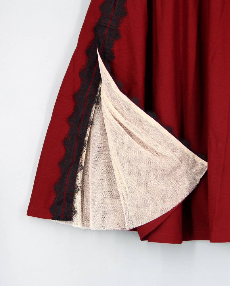 橡根腰頭, 蕾絲邊裝飾, 網紗拼接, 側開長裙