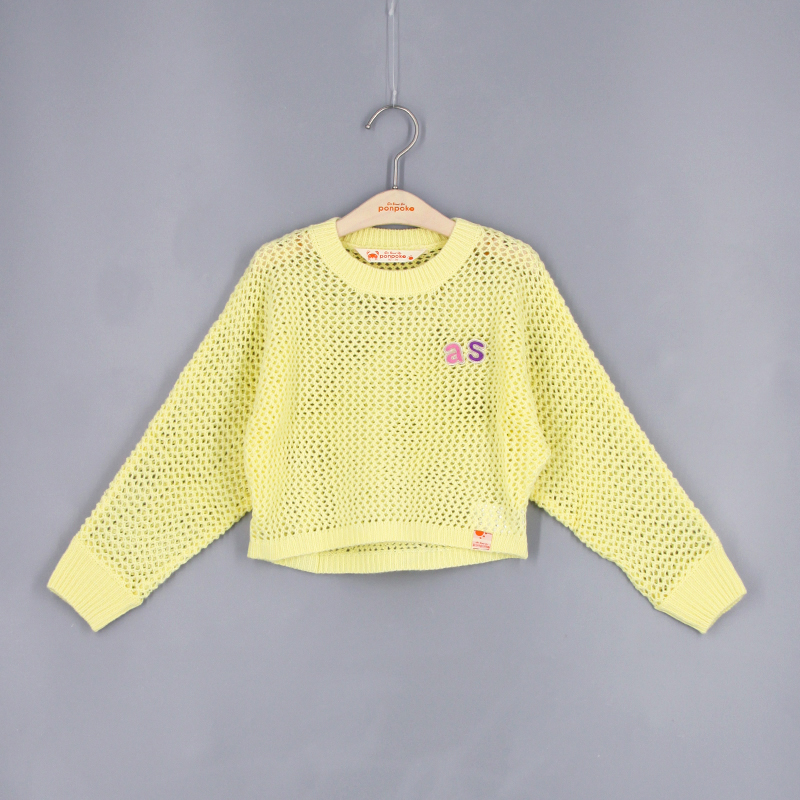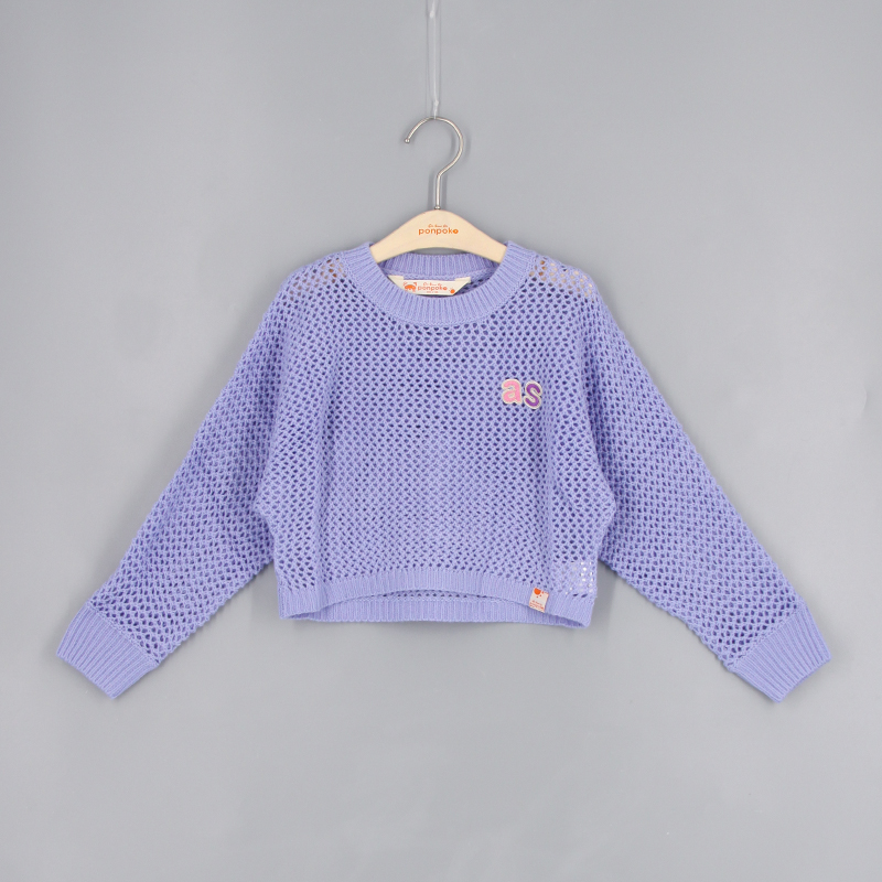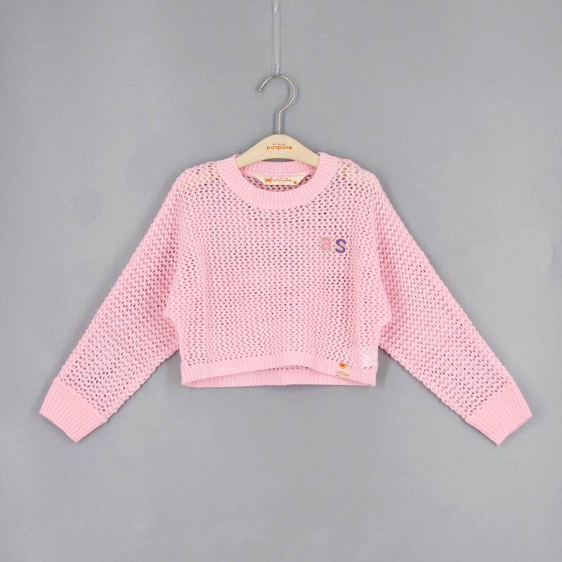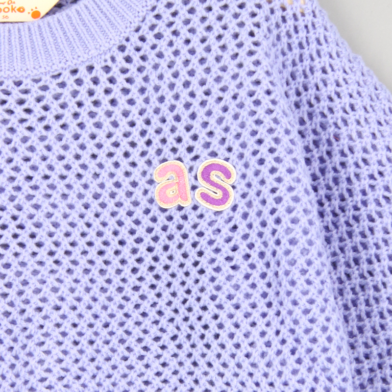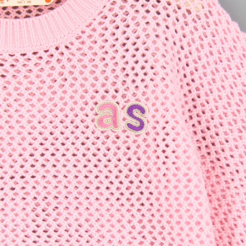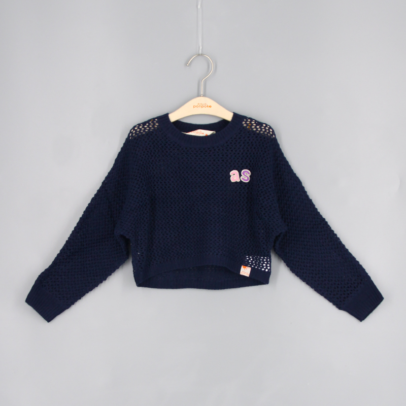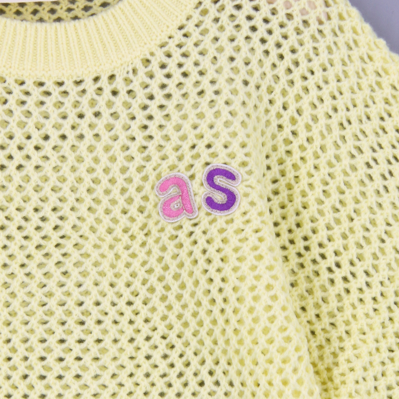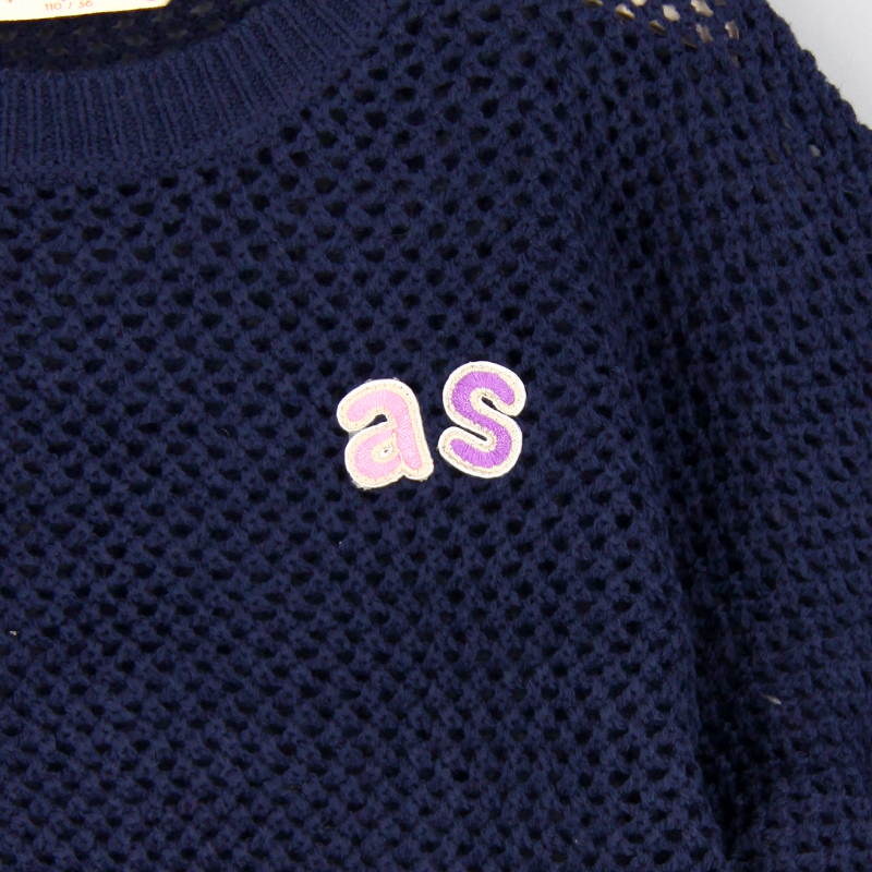 羅紋邊, 雙色as刺繡章, 品牌小標籤細節, 挑窿針織風格, 短身款, 蝙蝠袖