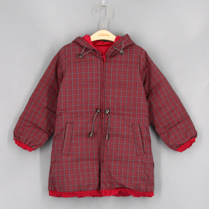 橡根索繩, 前方口袋, 橡根束腰, 前中拉鏈開合, 連帽款式, 格仔圖案, 兩面用
