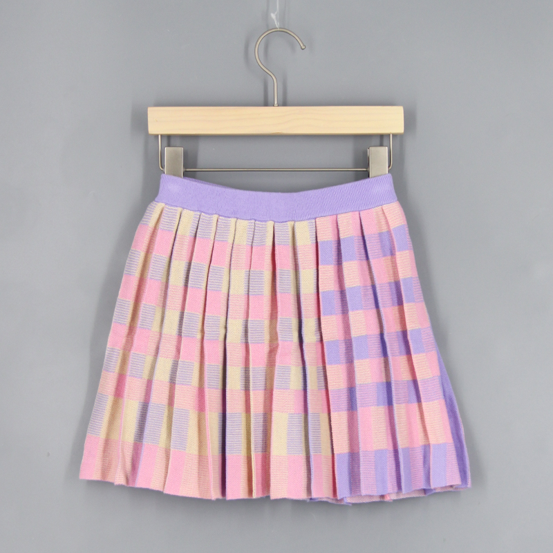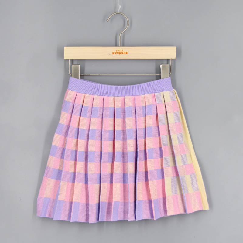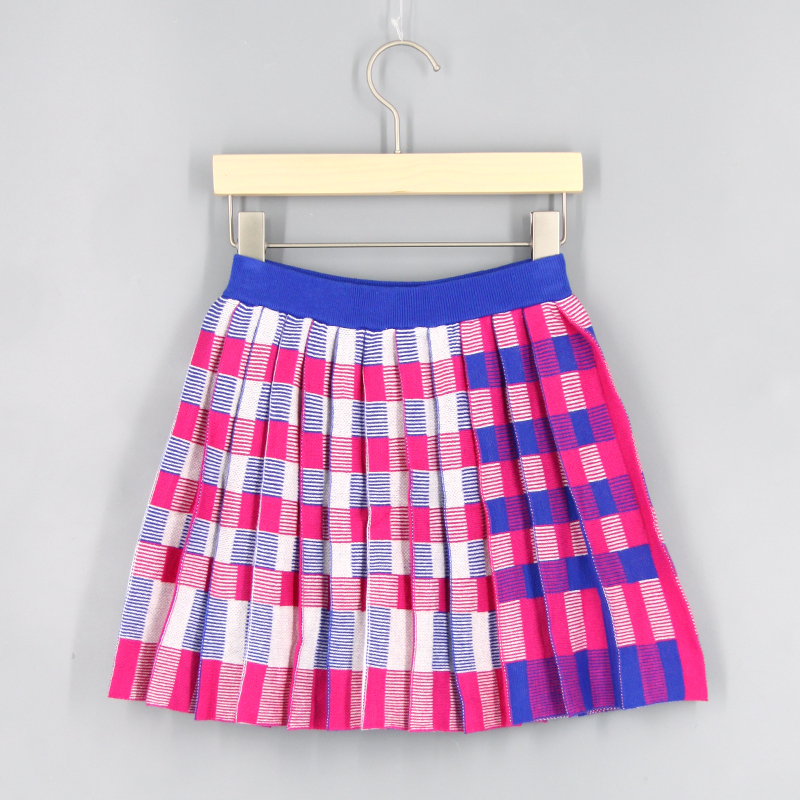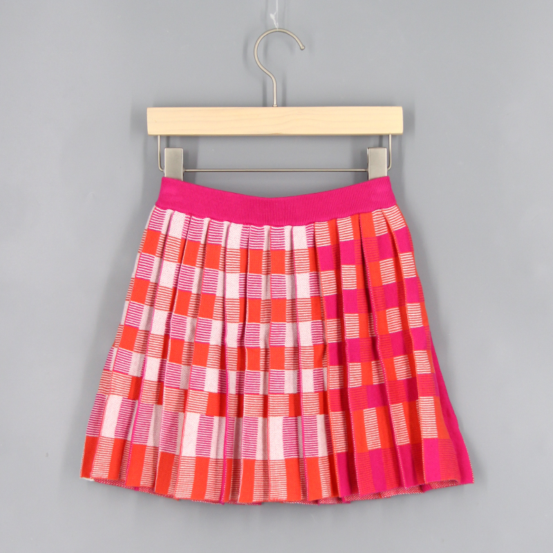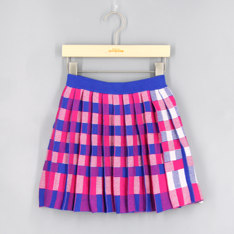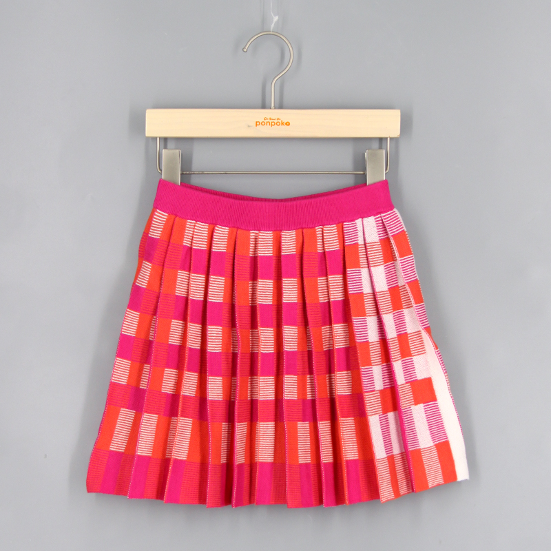 橡筋腰頭, 兩面穿款, 可以環迥 360 度穿著, 撞色格仔紋, 前後面兩色格仔圖案, 百褶裙, 暗褶位撞色細節, 全棉