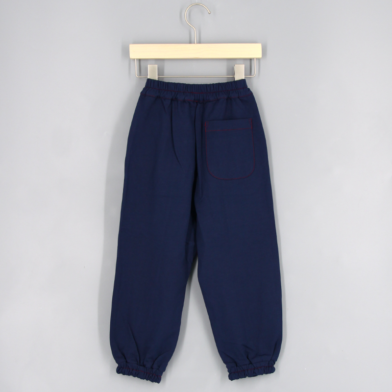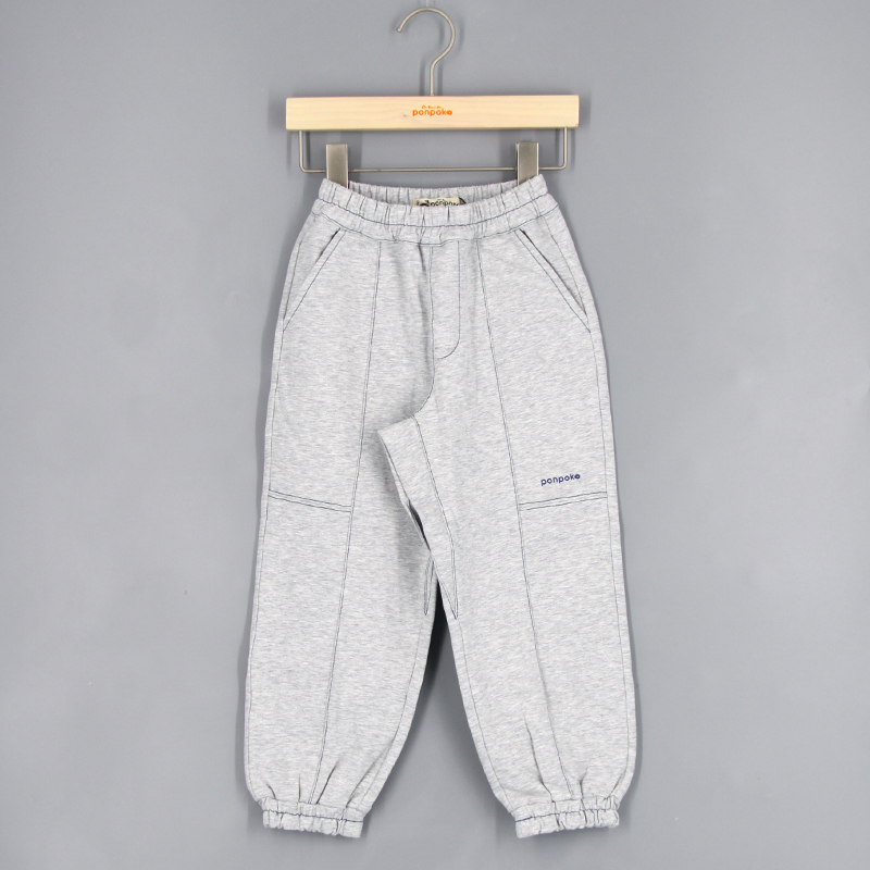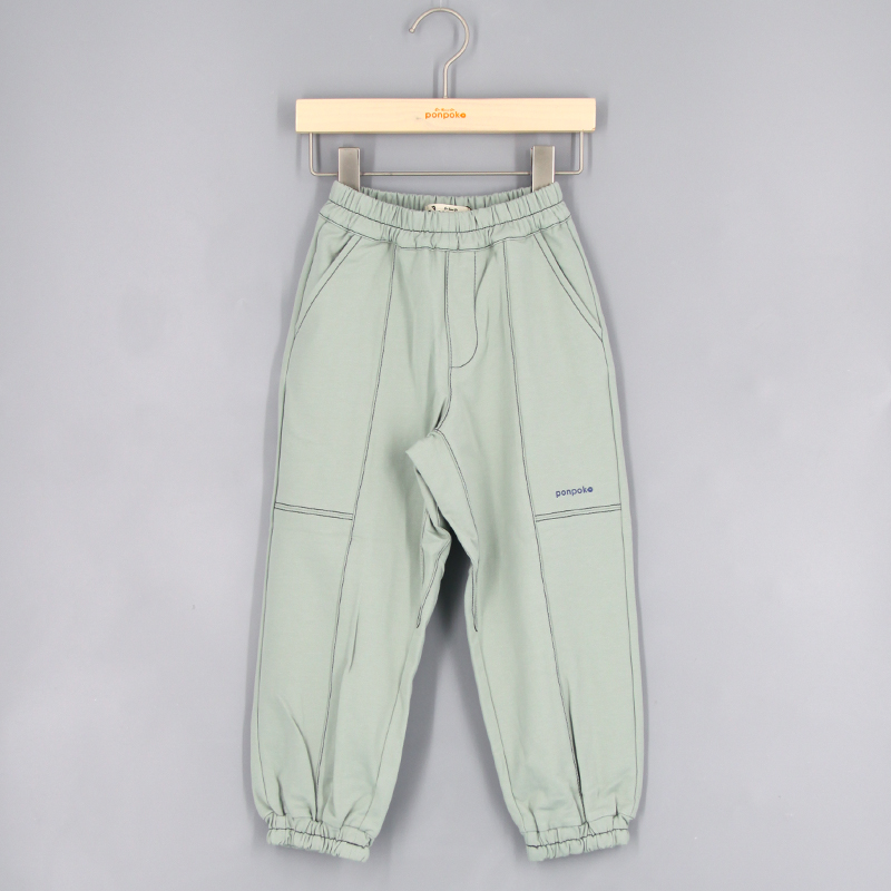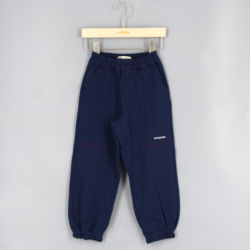 橡筋腰頭, 特色長方袋設計, 後方口袋, 撞色車線, Ponpoko 小字印花, 束腳褲, 寬鬆版型