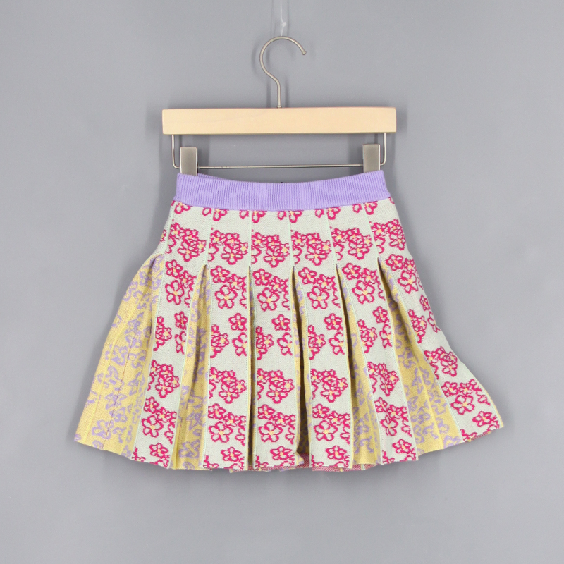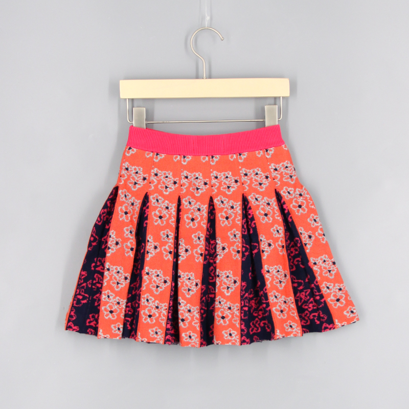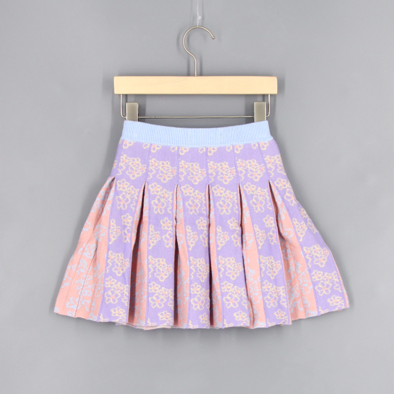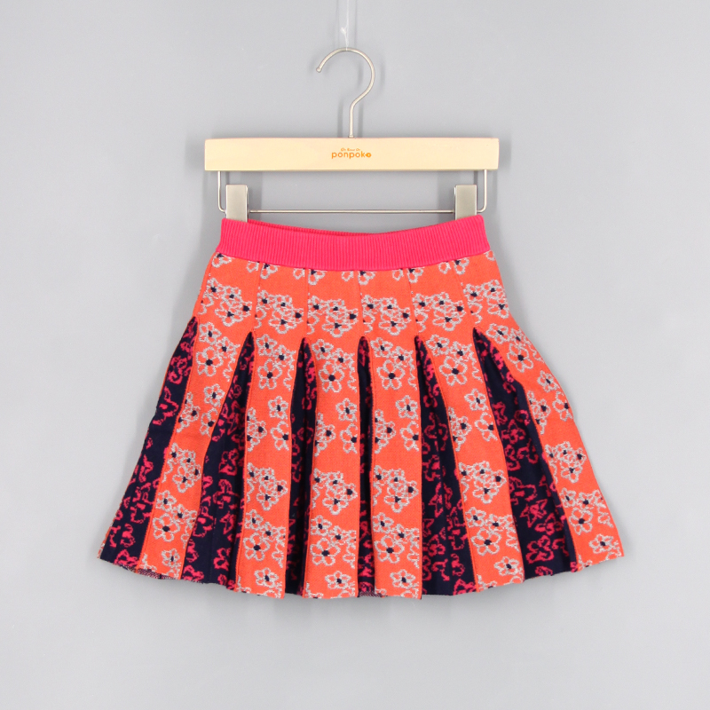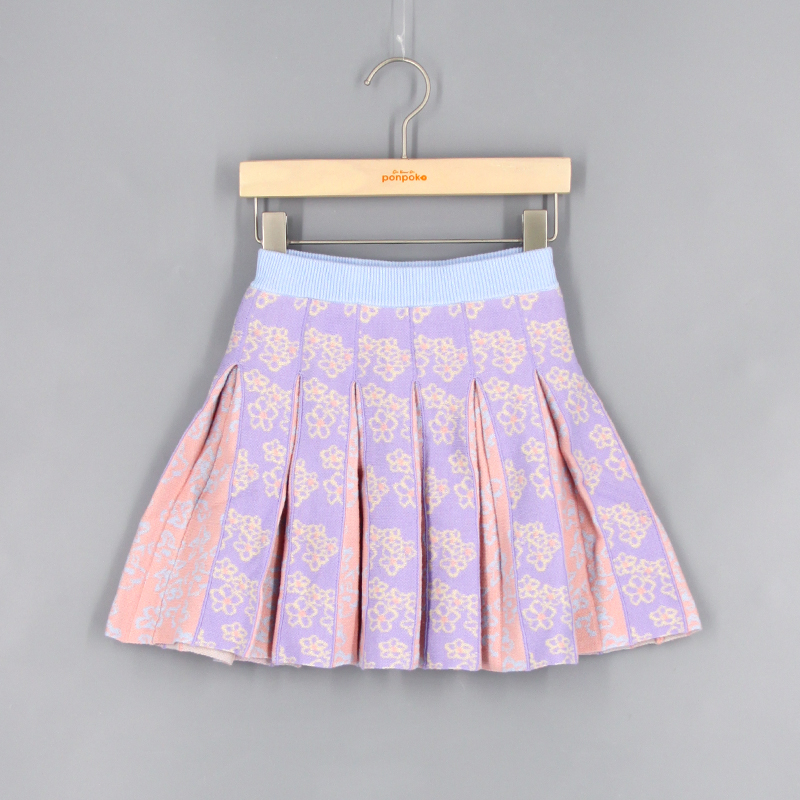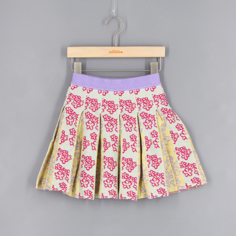 橡筋腰頭, 碎花圖案, 百褶裙, 暗褶位拼色細節, 全棉