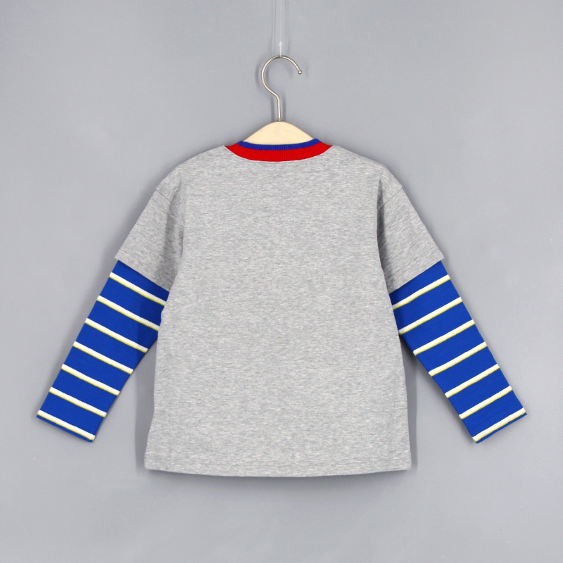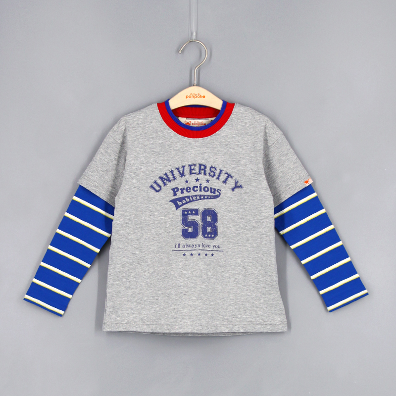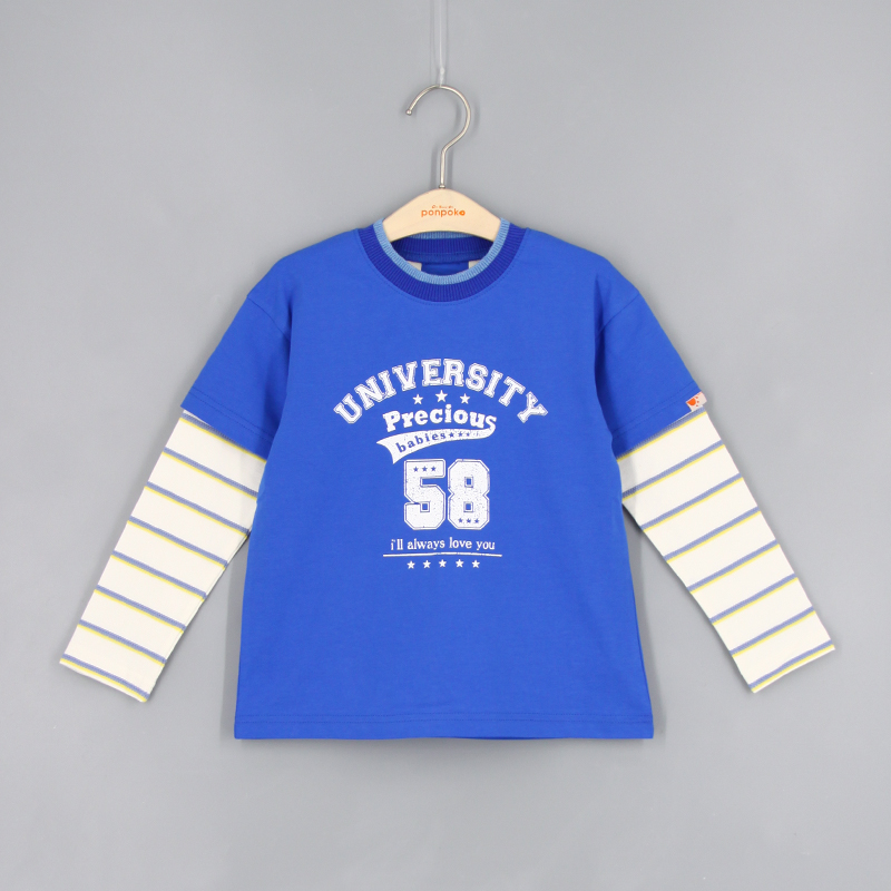圓領, 羅紋領, 品牌小標籤細節, 正面美式運動隊風格的大字印花, 假兩件