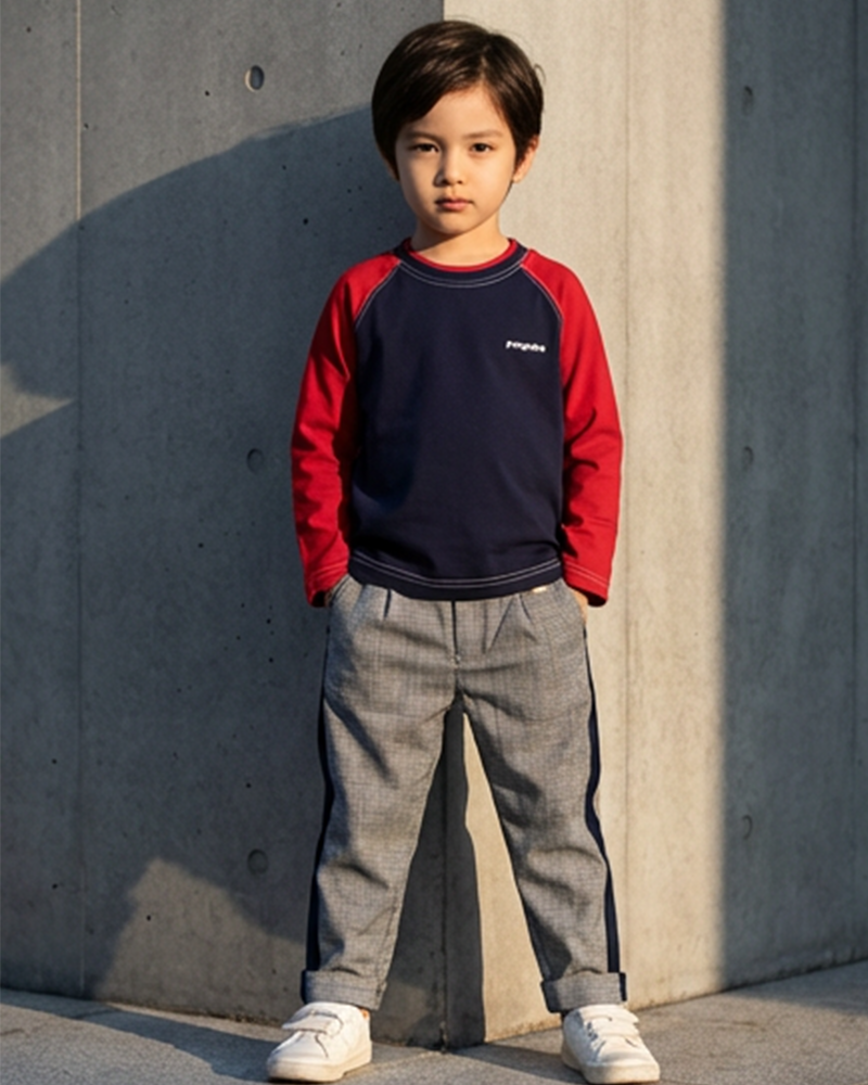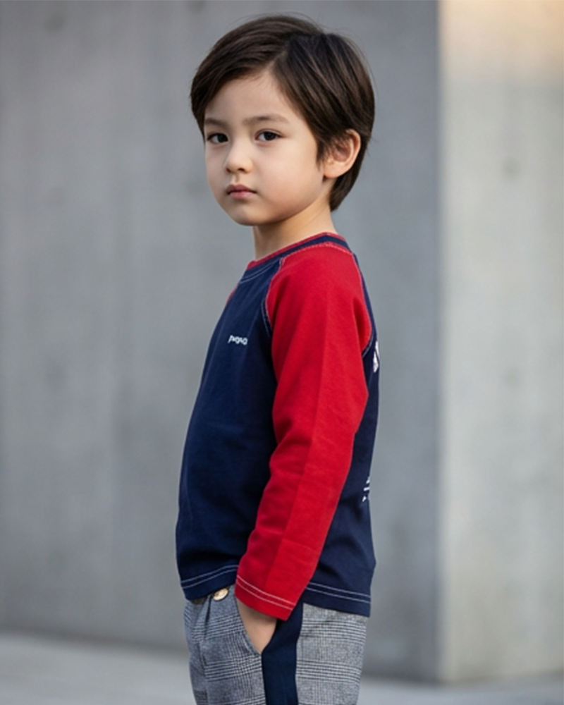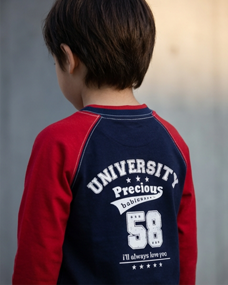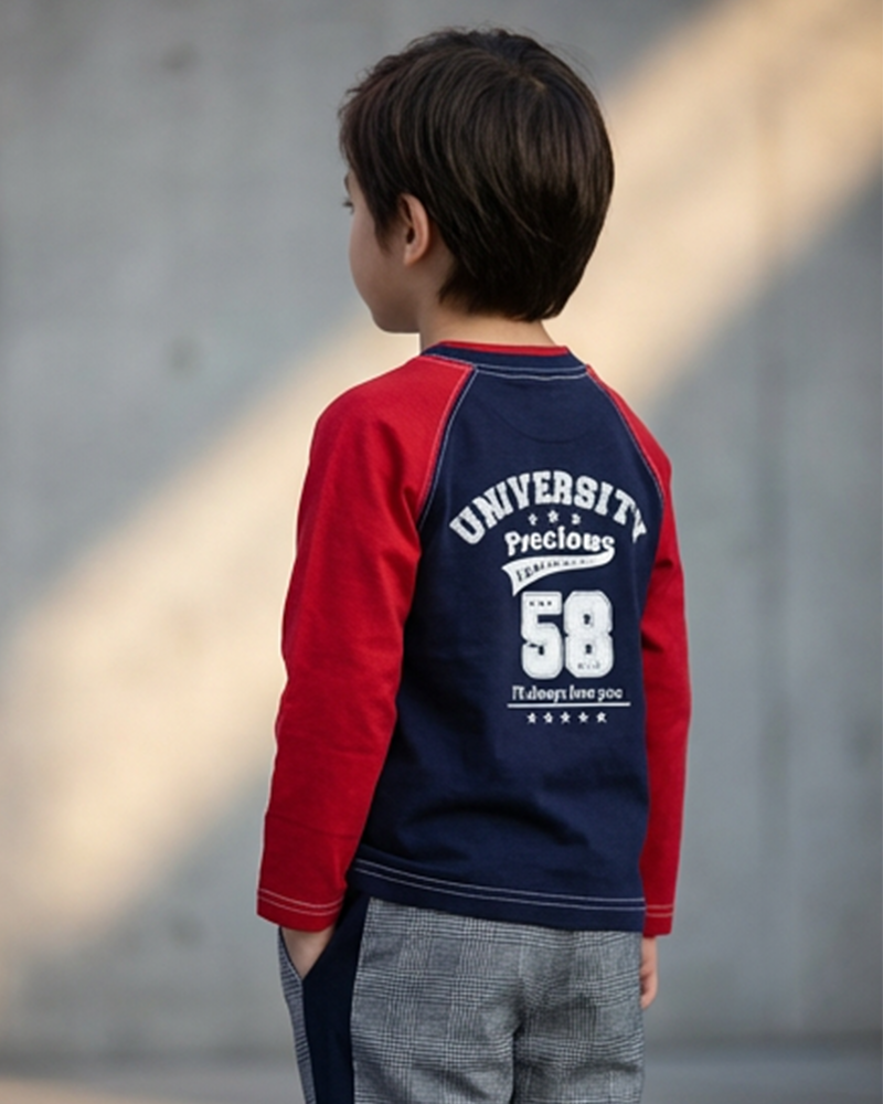圓領, 羅紋領, 牛角袖, Ponpoko印花, 背面美式運動隊風格的大字印花, 橡根收袖口設計, 撞色車線, 撞色風格, 男女通用款式
