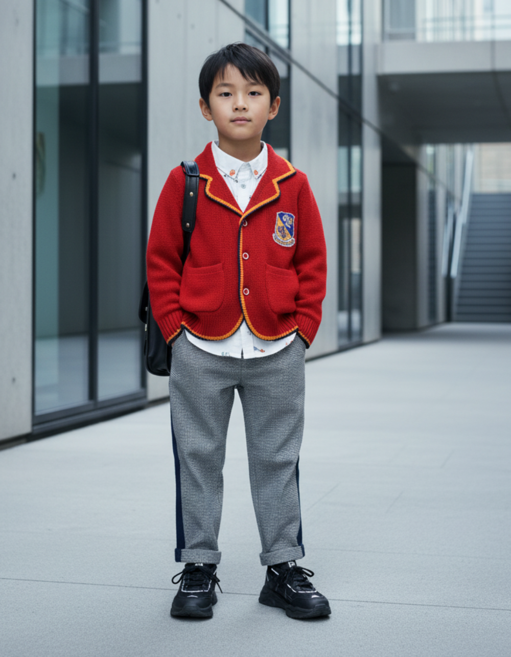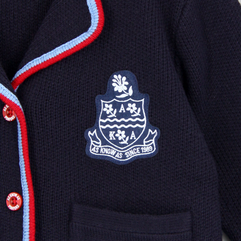 As Know As刺繡校章, 羅紋衫腳及手咀, 前面小口袋, 前中鈕扣開合, 品牌特色鈕扣, 撞雙色邊飾, 男女通用款式