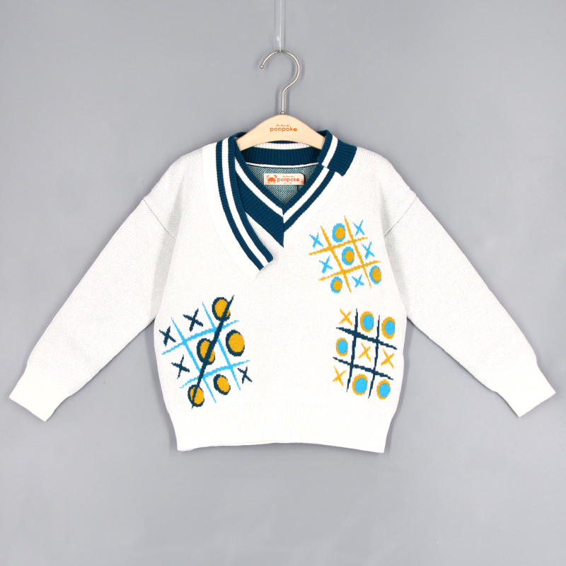 間色設計, V領, 羅紋領, 手繪風圖案, 錯位視覺風格, 羅紋手袖及衫腳, 男女通用款式, 全棉, 合身款式