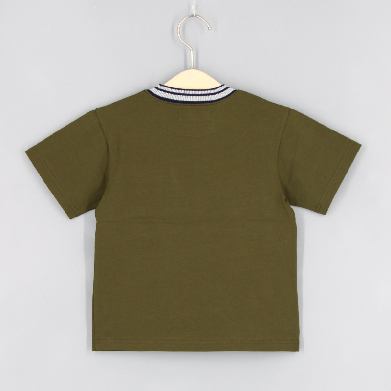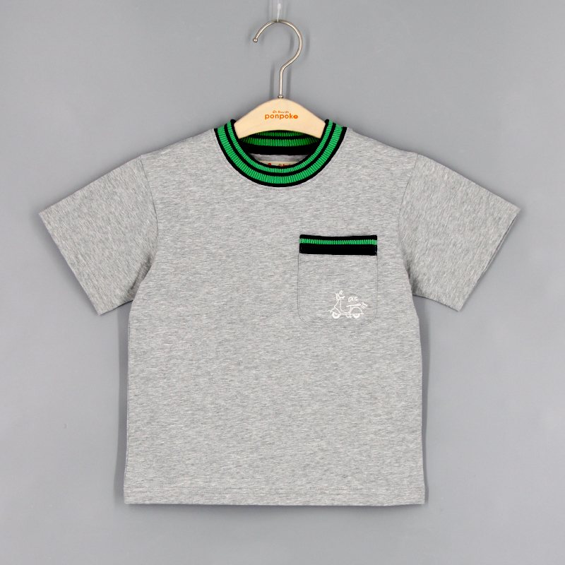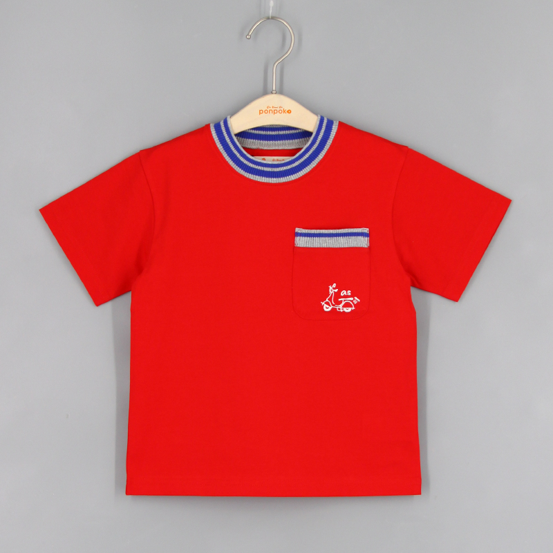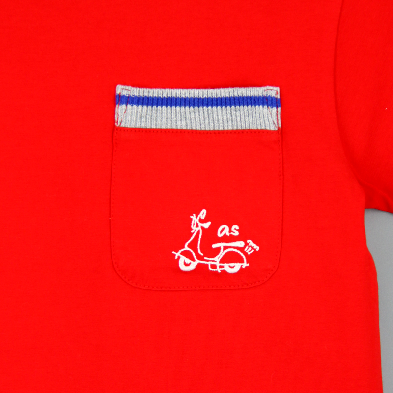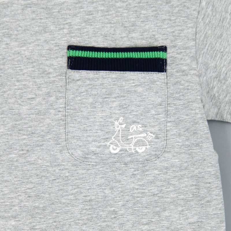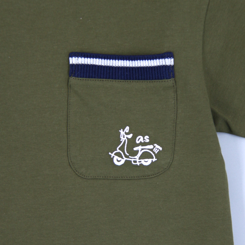 圓領, 撞色羅紋領, 胸袋, 摩托車刺繡圖案, 合身款式