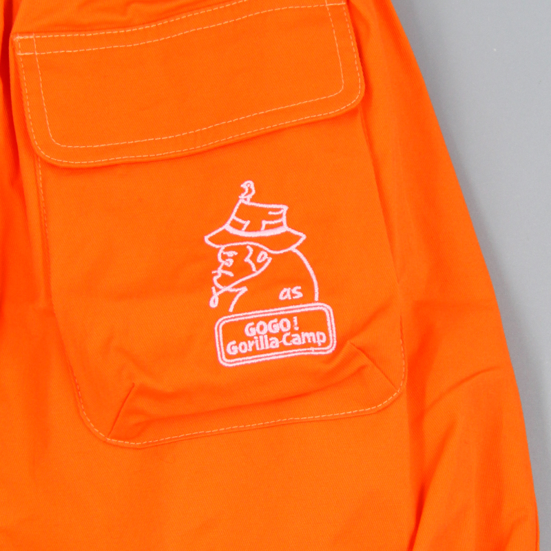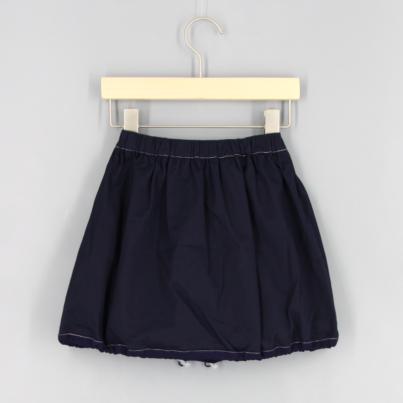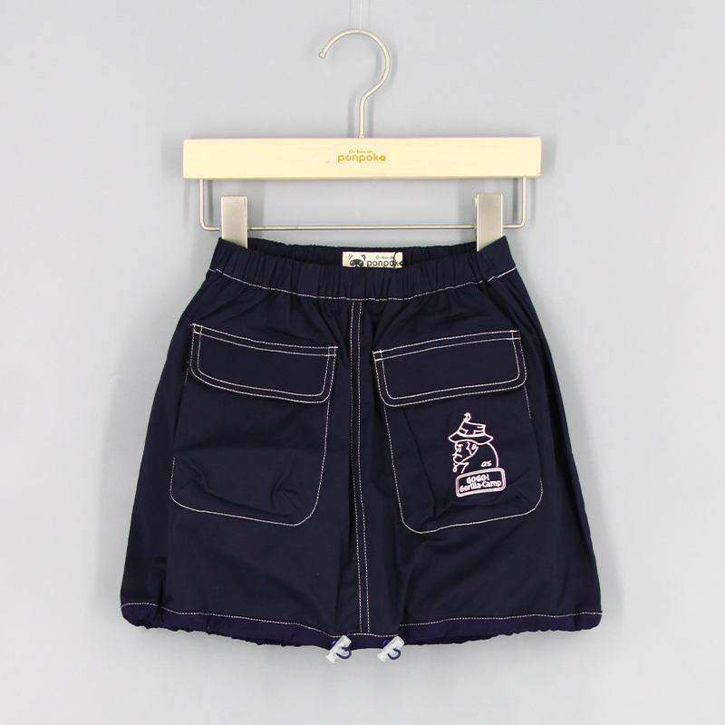 輕薄斜紋布料, 橡筋腰頭, 撞色車線, 前方立體口袋, 山系刺繡圖案, 泡泡短裙, 彈性束繩腳細節