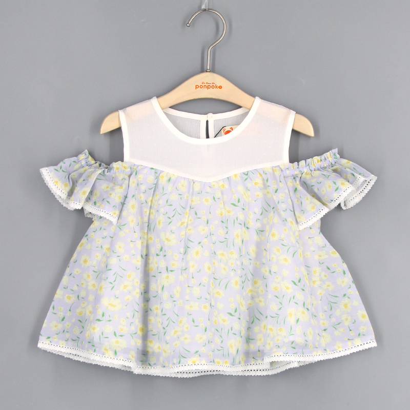 圓領, 荷葉袖, 袖口橡根設計, 露膊款式, 蕾絲花邊飾, 鎖匙窿細節, 拼布設計, 碎花圖案, 寬鬆合身