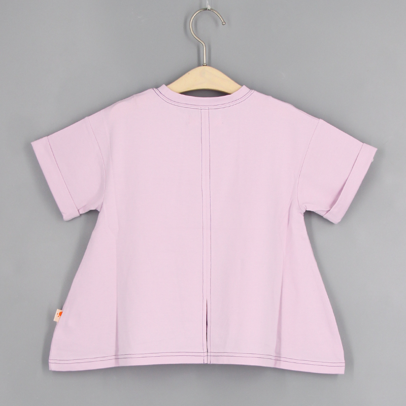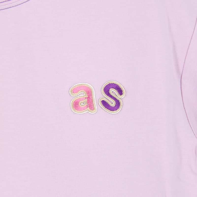 圓領, 捲袖設計, as布貼, 前短後長衫腳, 後方開叉, 大闊腳下擺, 品牌小標籤細節, 撞色車線, 寬鬆款式