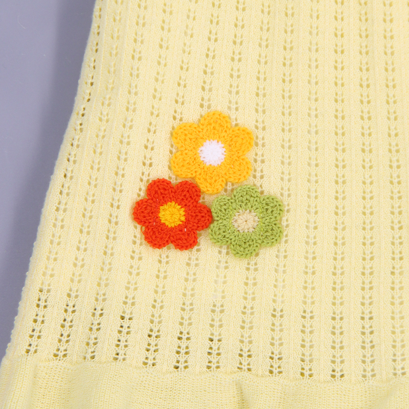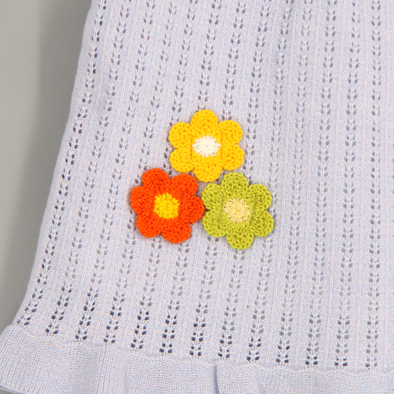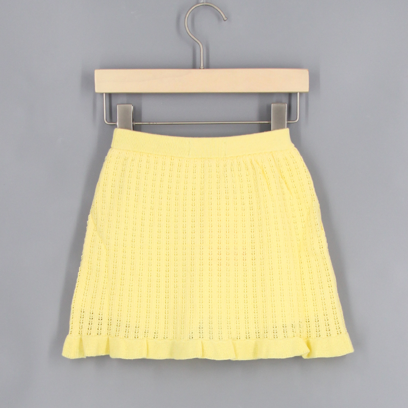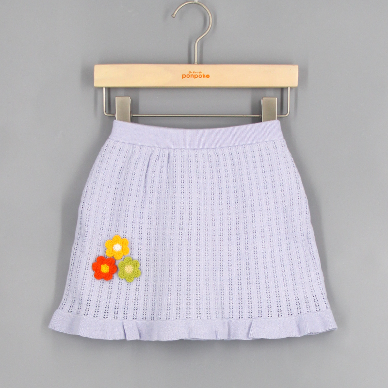 橡筋腰頭, 木耳邊裙擺, 挑窿針織花紋, 勾花布貼, 附打底褲, 合身款式