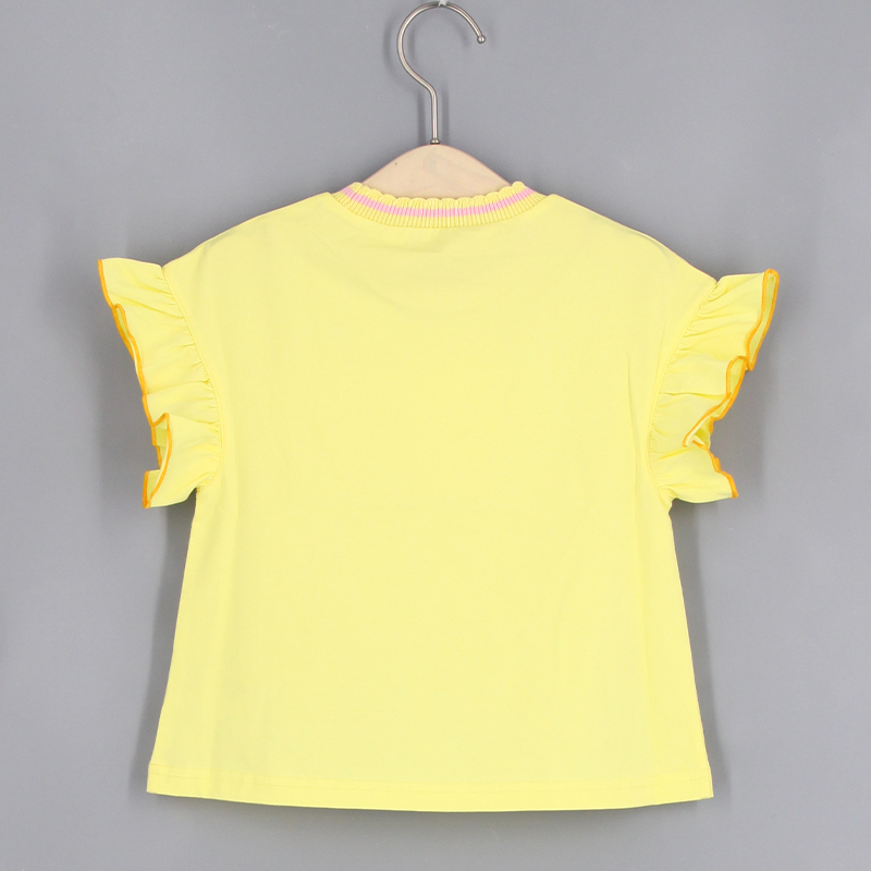 圓領, 撞色羅紋領, 荷葉袖, 太陽花胸袋, 寬鬆合身