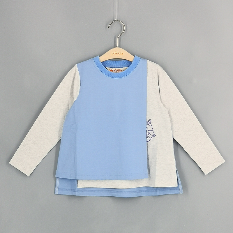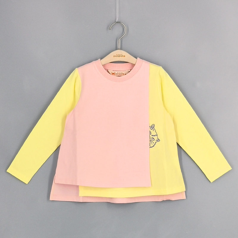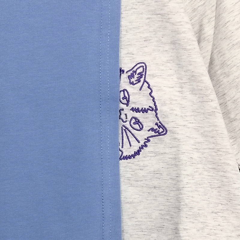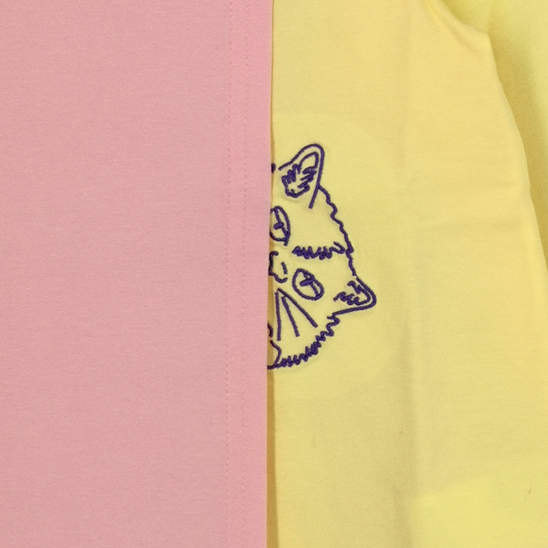 圓領, 貓貓刺繡圖案, 特色疊層剪裁設計, 前短後長衫腳, 撞色風格