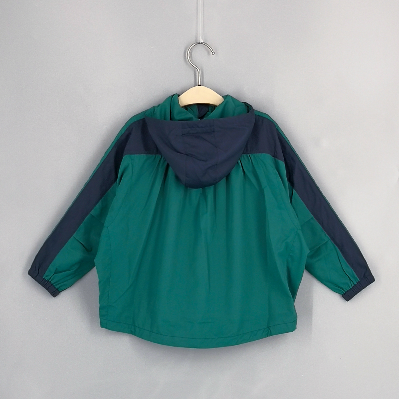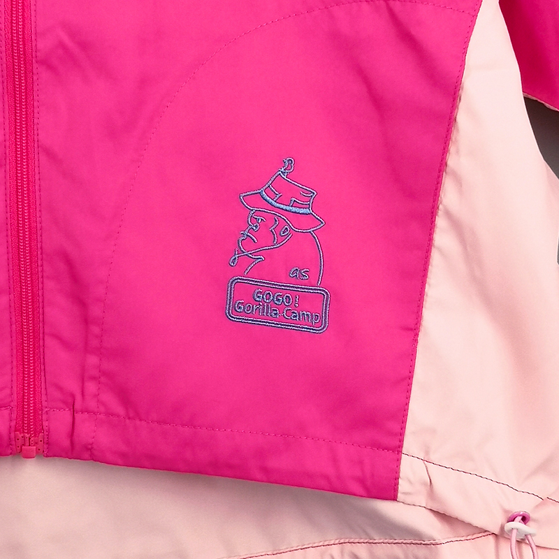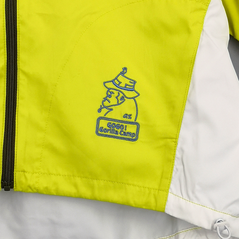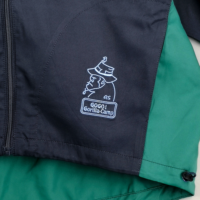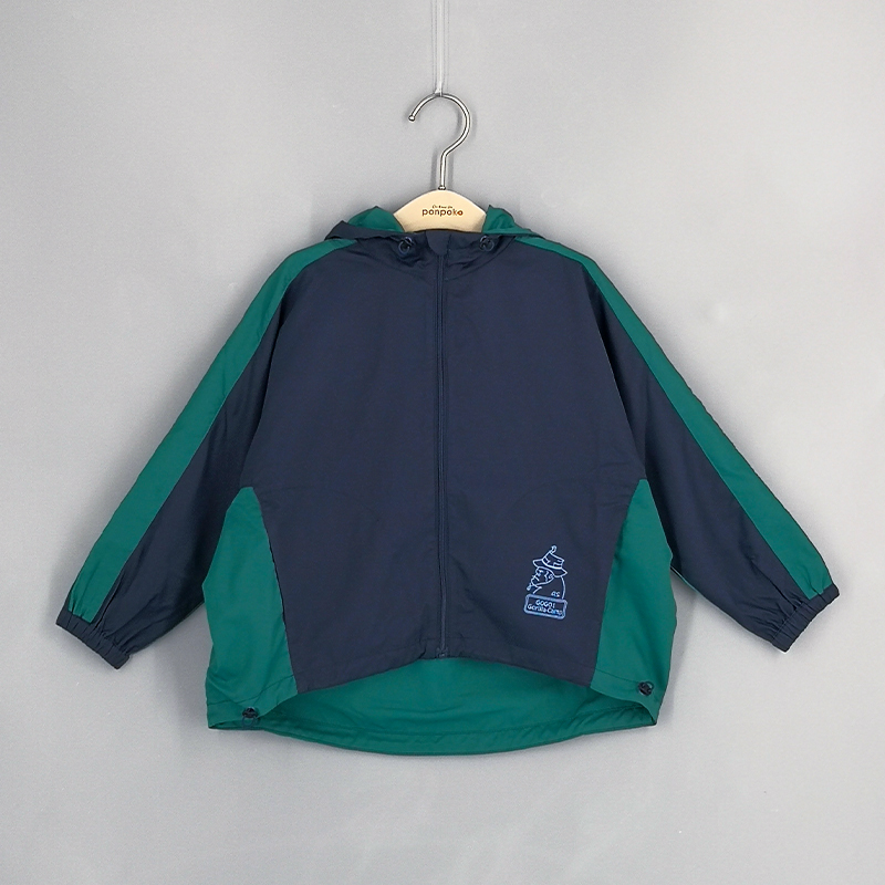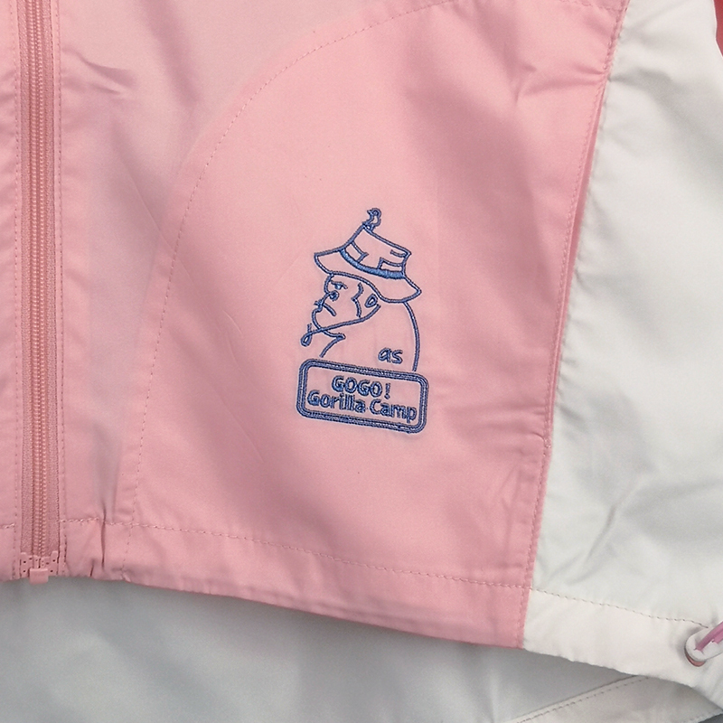 前中拉鏈開合, 束繩領, 兩側口袋, 山系刺繡圖案, 束腳款式, 前短後長衫腳, 蝙蝠袖款, 連帽款式, 寬鬆版型, 拼色風格, 男女通用款式