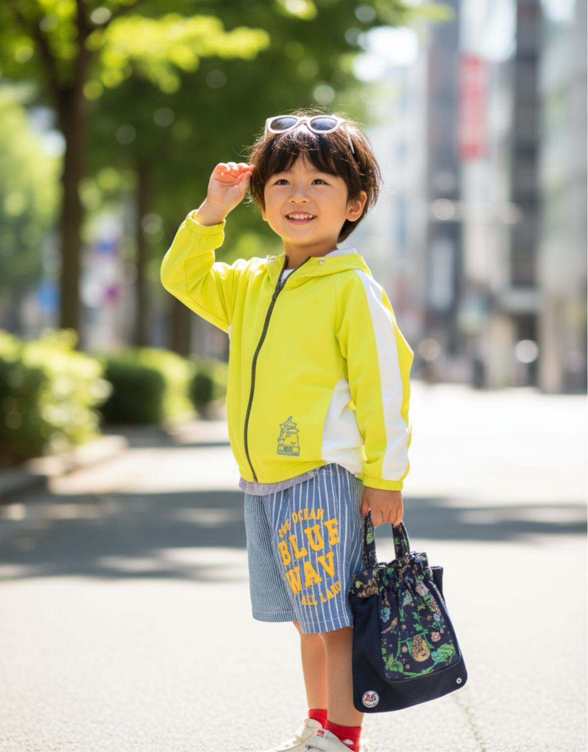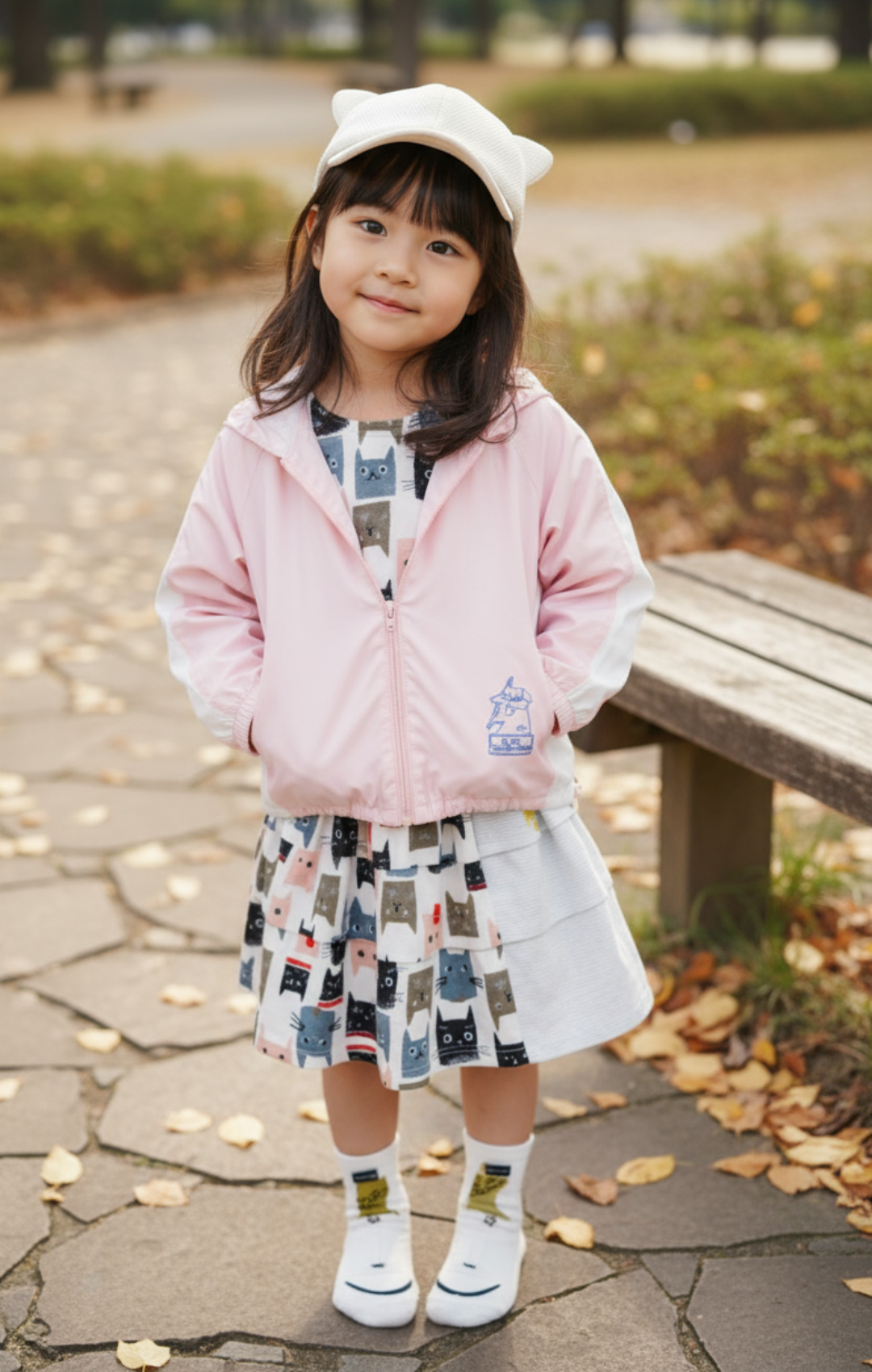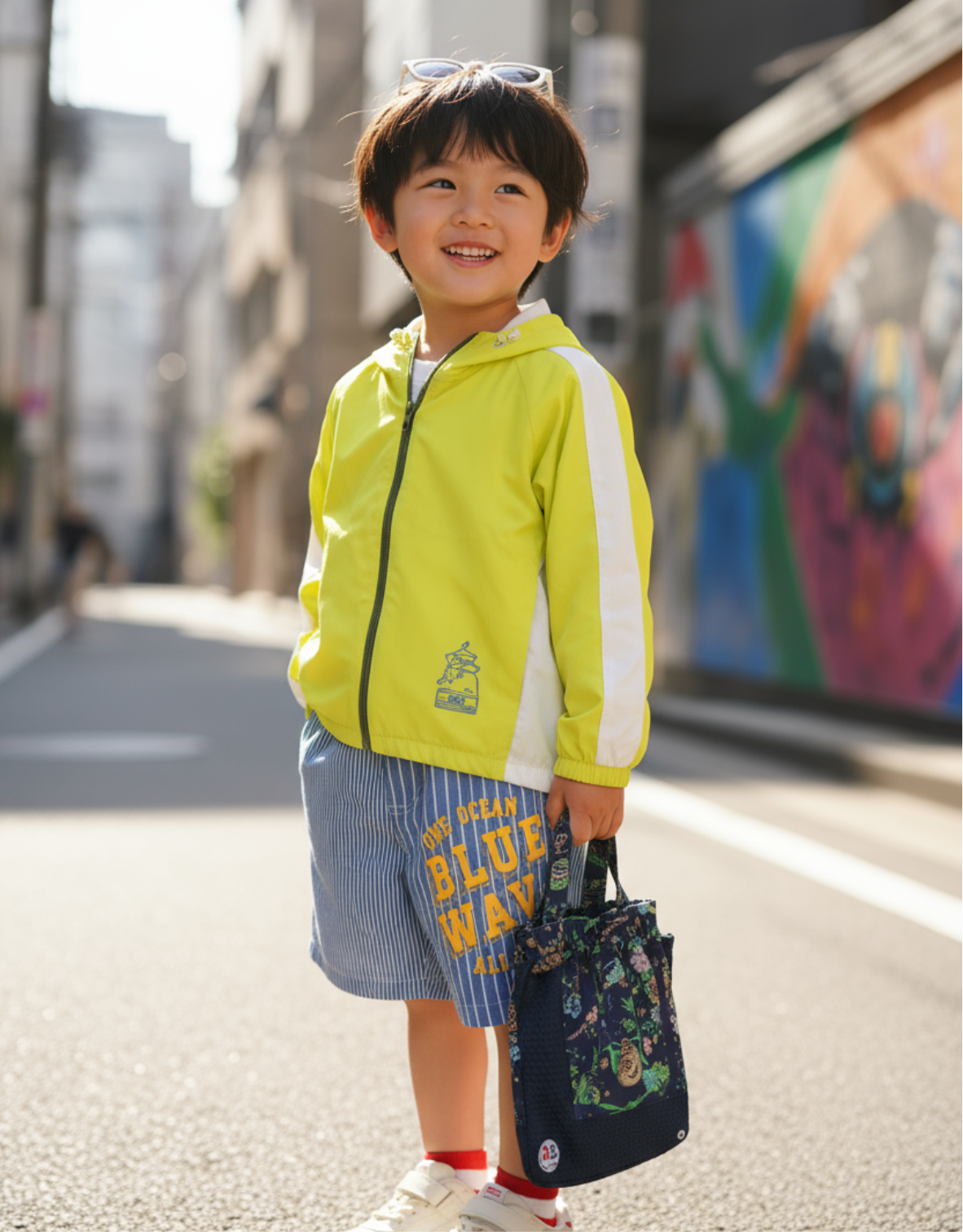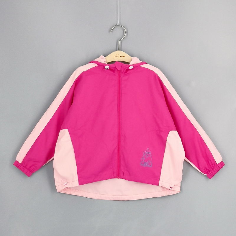 前中拉鏈開合, 束繩領, 兩側口袋, 山系刺繡圖案, 束腳款式, 前短後長衫腳, 蝙蝠袖款, 連帽款式, 寬鬆版型, 拼色風格, 男女通用款式