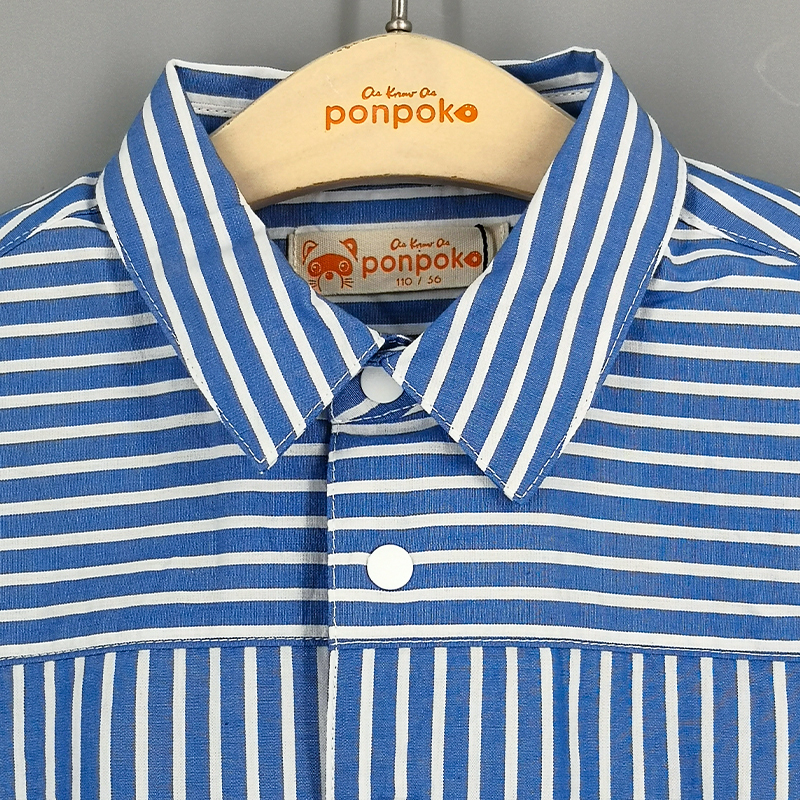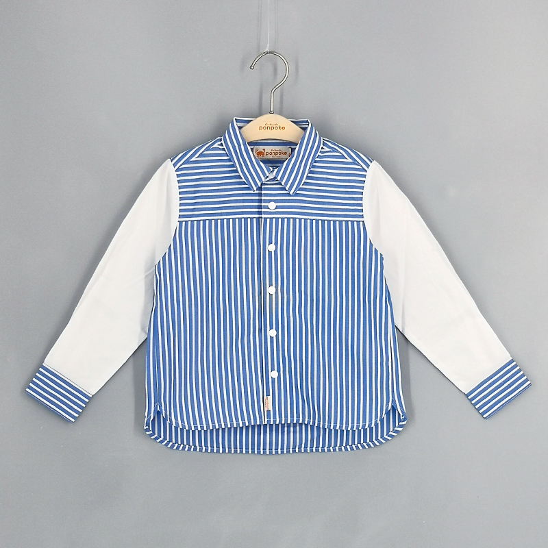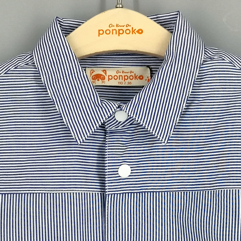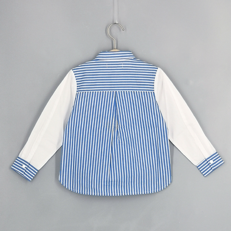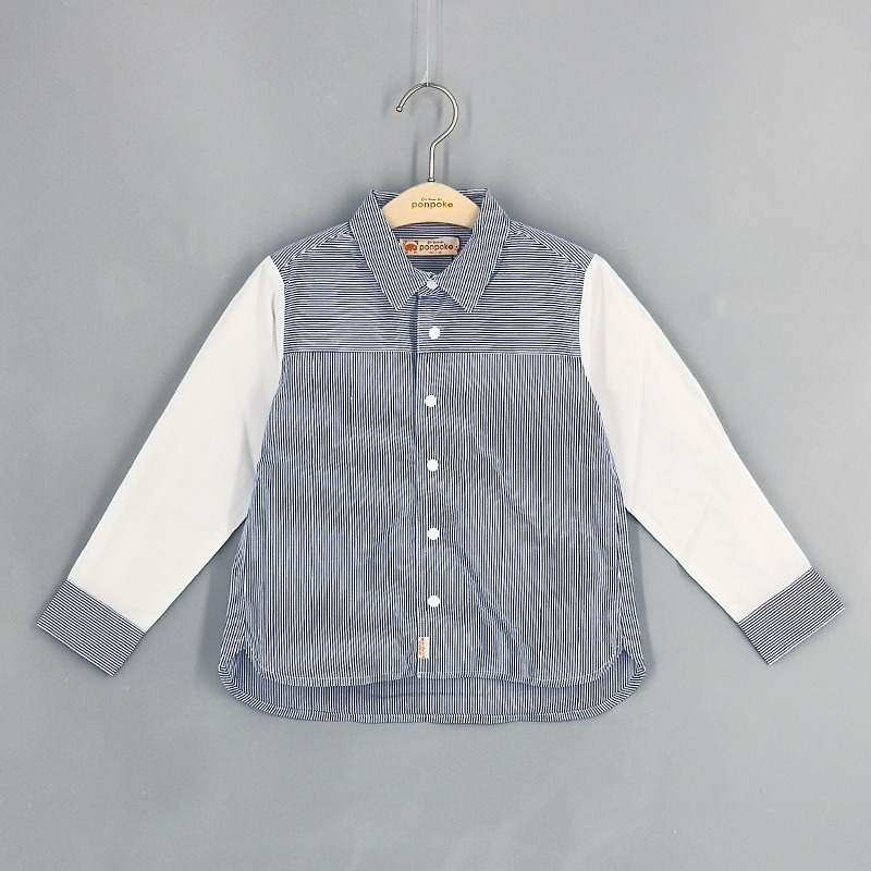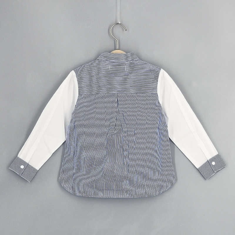長袖, 前中鈕扣開合, 前短後長, 撞色手袖, 格仔圖案, 品牌小標籤細節, 壓褶細節, 合身款式, 全棉