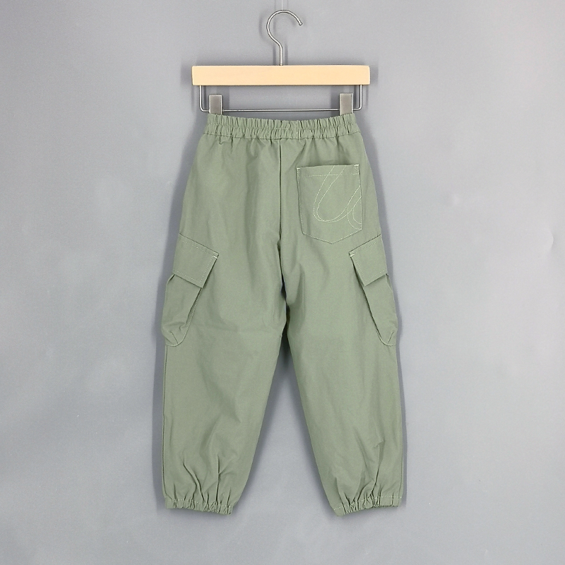 橡筋腰頭, 立體大口袋設計, 兩側及後方口袋, 束腳款式, 後袋車線設計, 男女通用款式