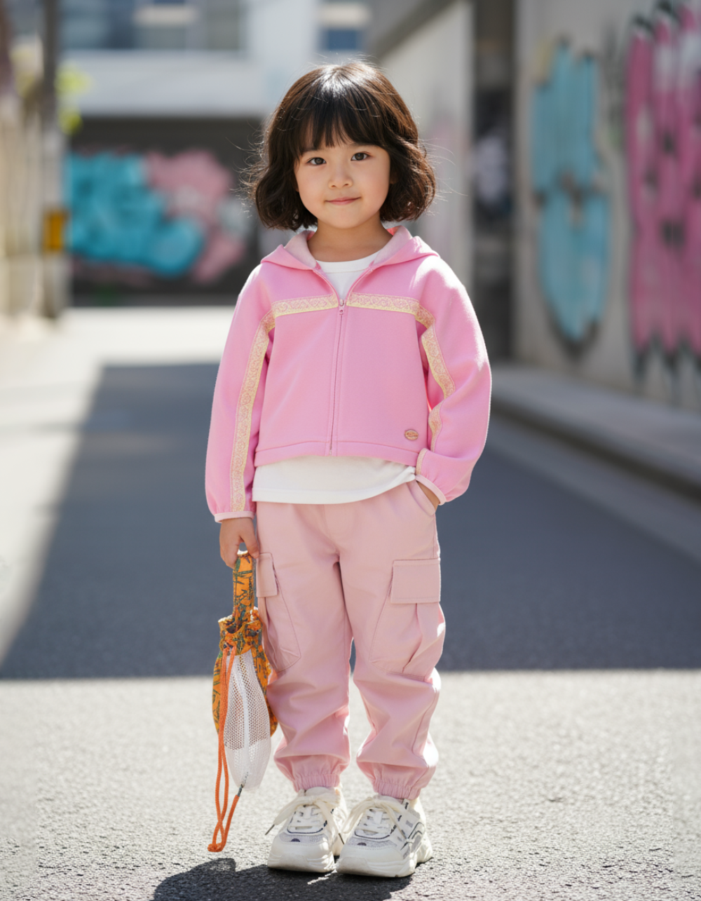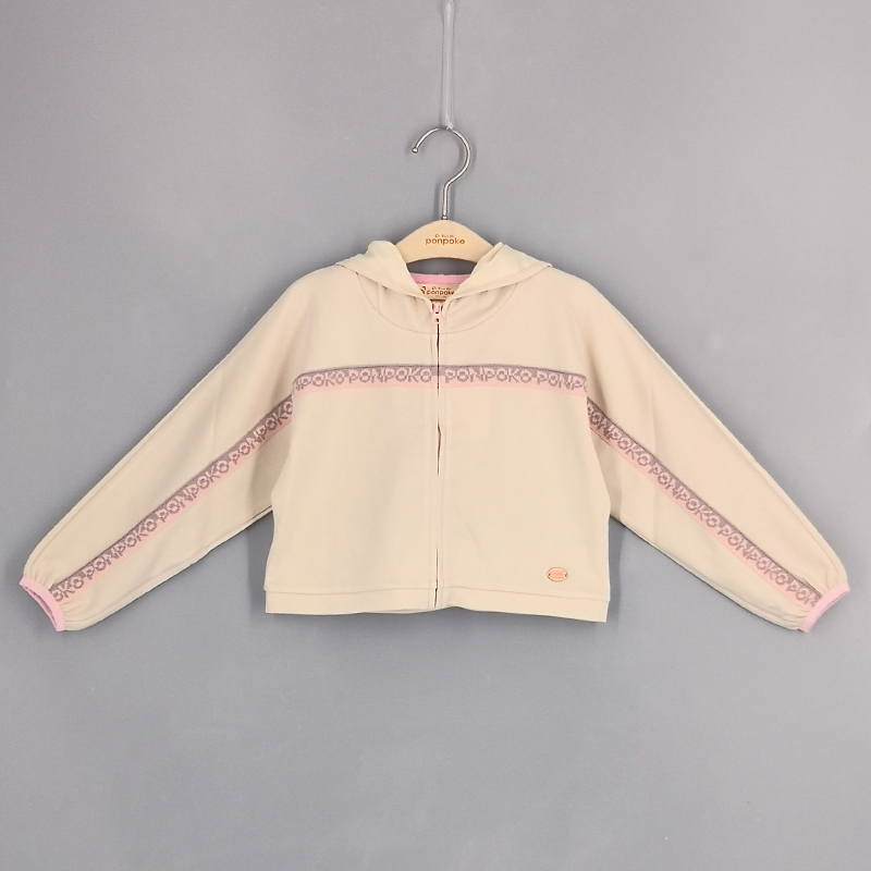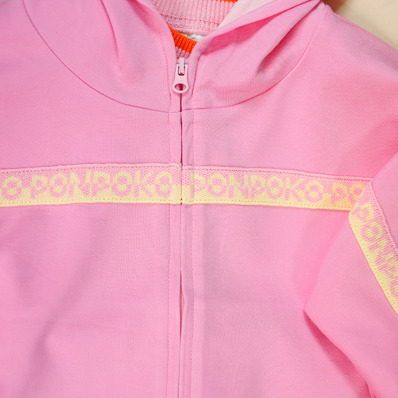 蝙蝠袖, 前中拉鏈開合, 袖口包邊, 品牌金屬章, PONPOKO撞色織帶, 撞色風格, 連帽款式