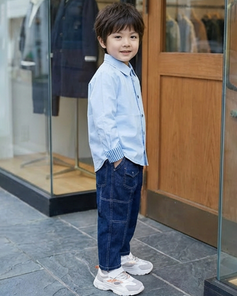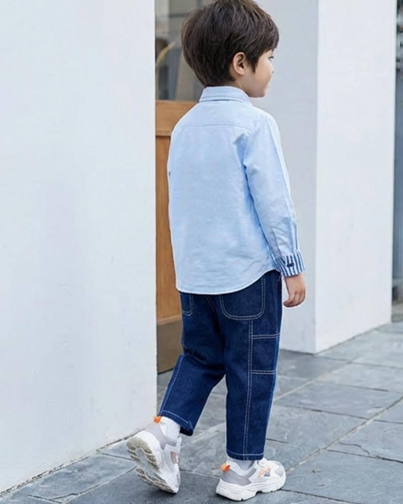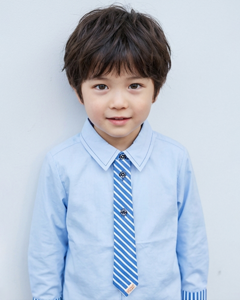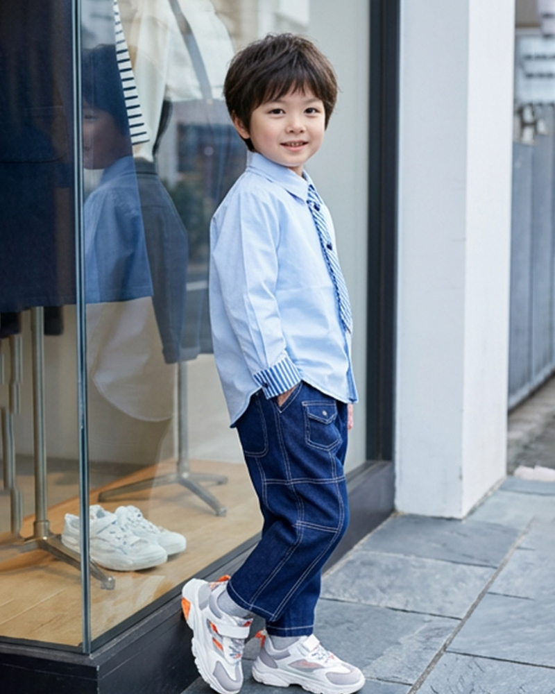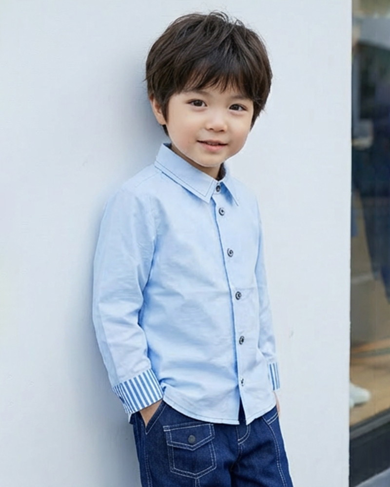 長袖, 前中鈕扣開合, 前短後長, 撞色手袖, 可拆卸領帶, 品牌小標籤細節, 合身款式, 全棉